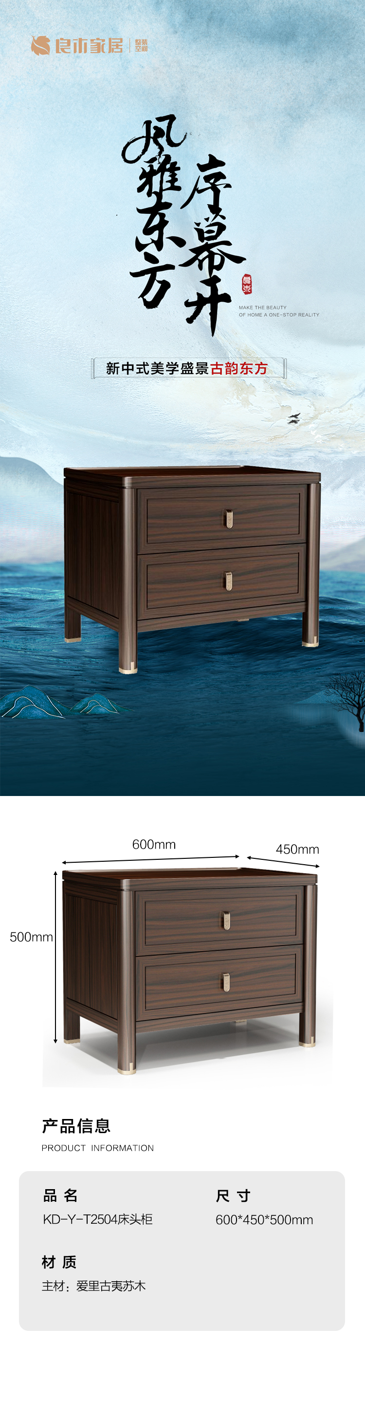 【新中式-床头柜KD-Y-T2504】黑檀/卧房/床头柜