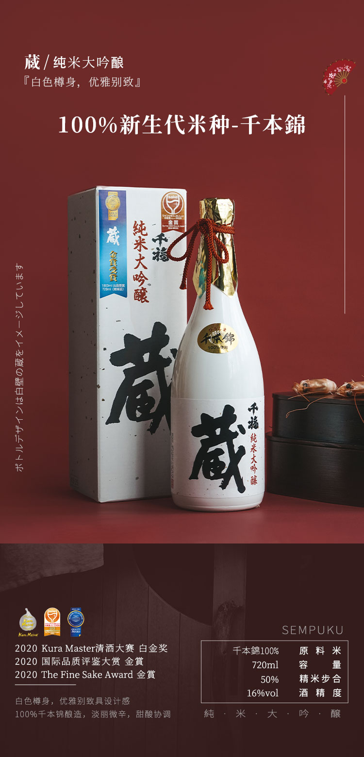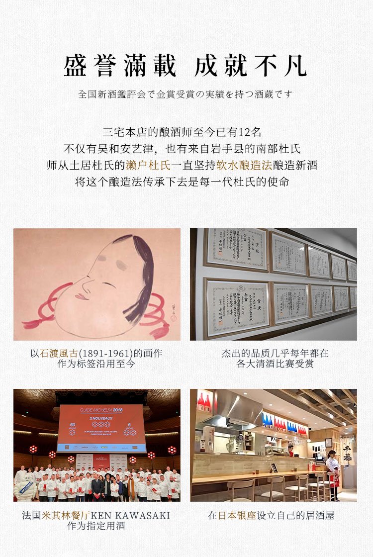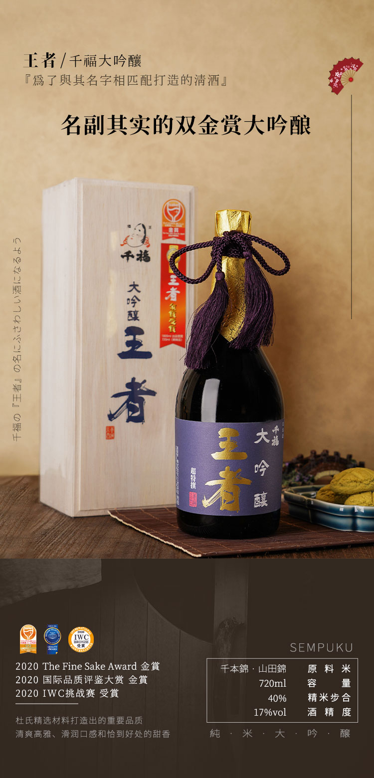 【金奖三连冠】千福王者大吟酿 日本原瓶进口清酒