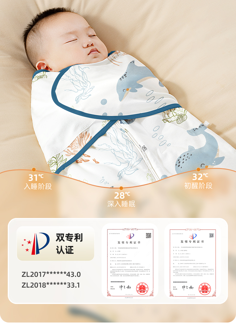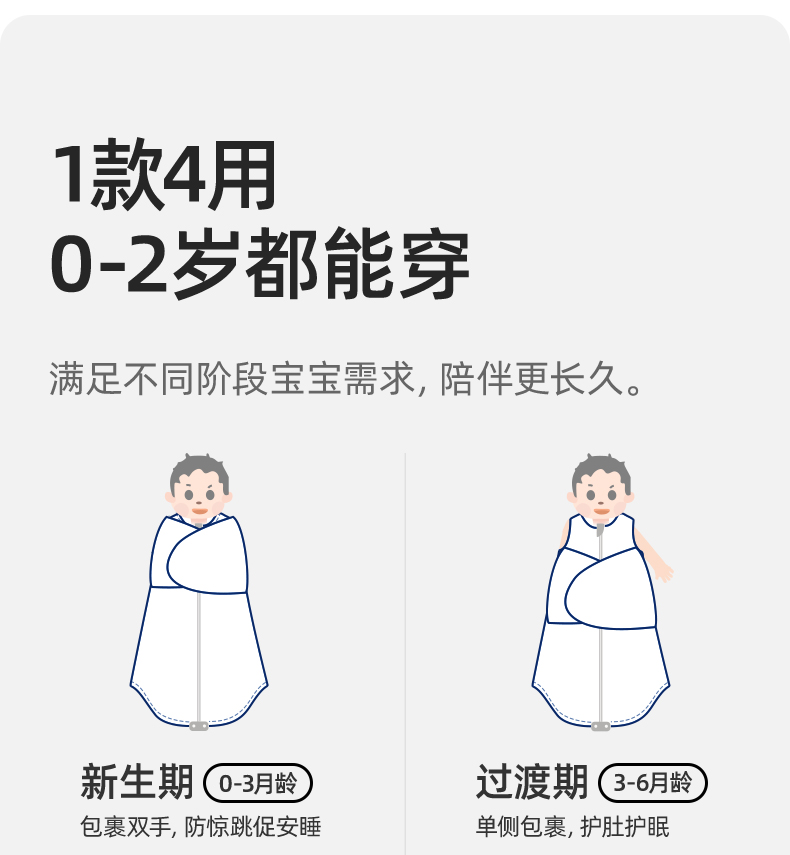 贝肽斯婴儿防惊跳睡袋秋冬款包巾宝宝襁褓巾包被恒温宝宝睡觉神器