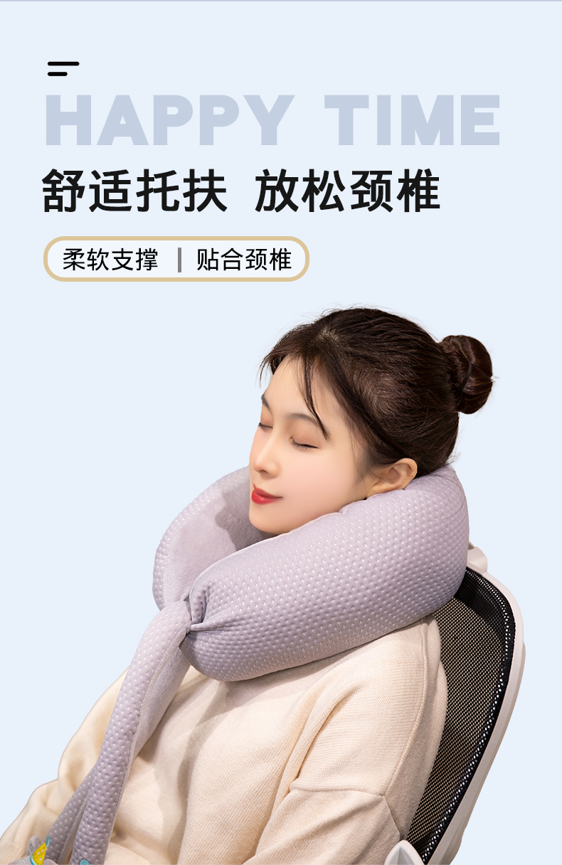 自然醒卡通玩偶绑结式颈枕冰丝耷拉U型枕旅行护脖枕办公室午睡神器QYL