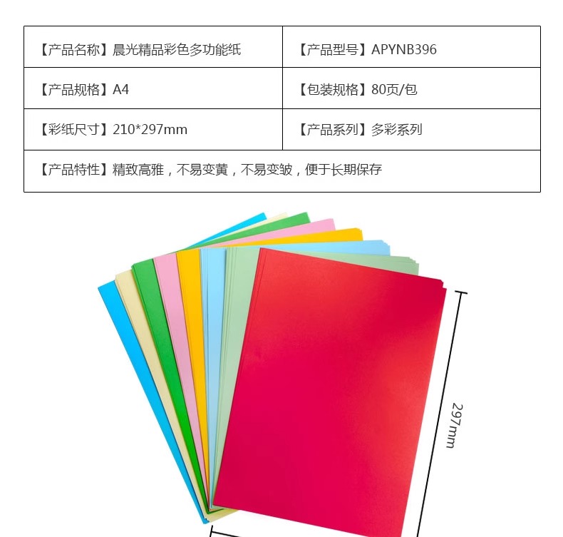 APYNB396晨光A4彩色多功能纸80页(多色装) 儿童多彩折纸材料手工纸美术纸