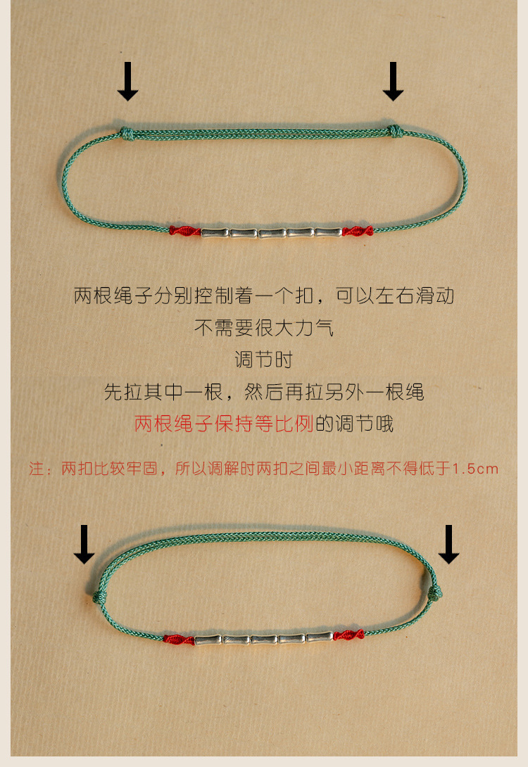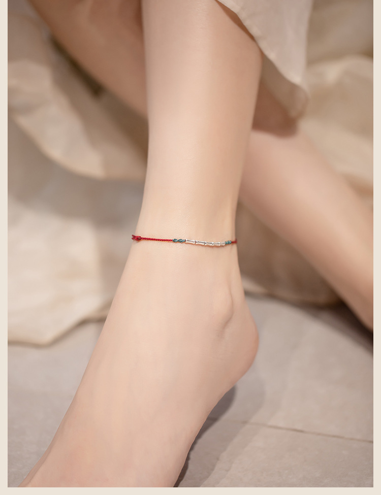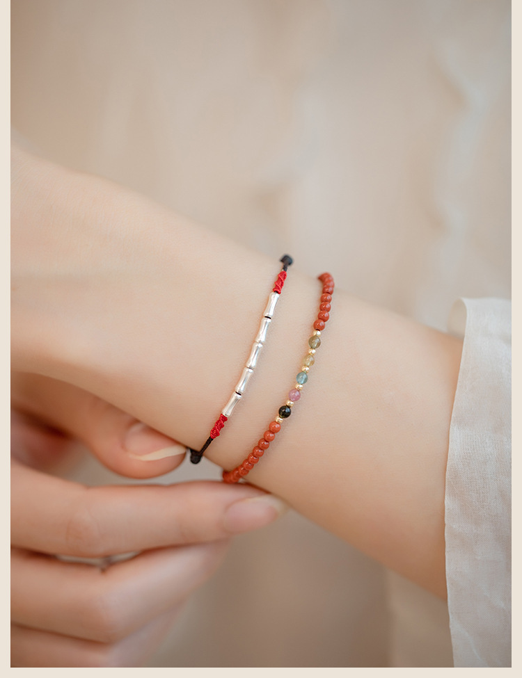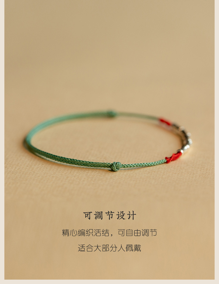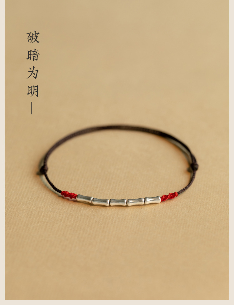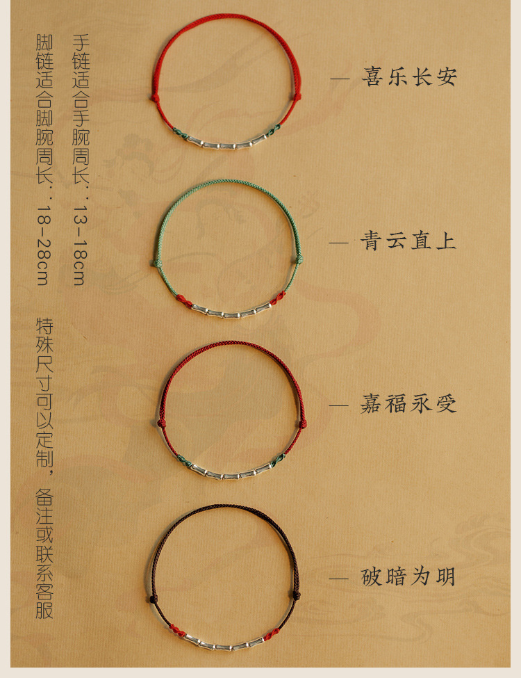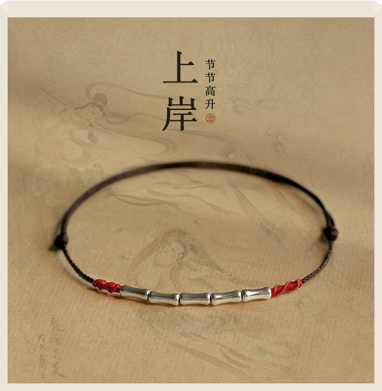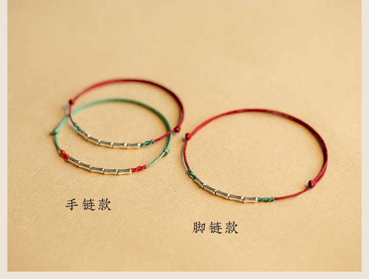六鑫珠宝 上岸考研 S925银竹节红绳编织手绳/脚绳