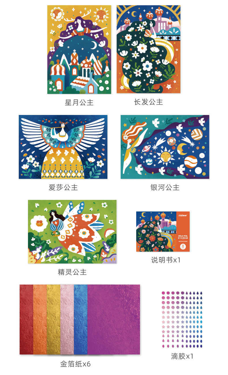 弥鹿mideer金箔纸黏贴画-公主日记