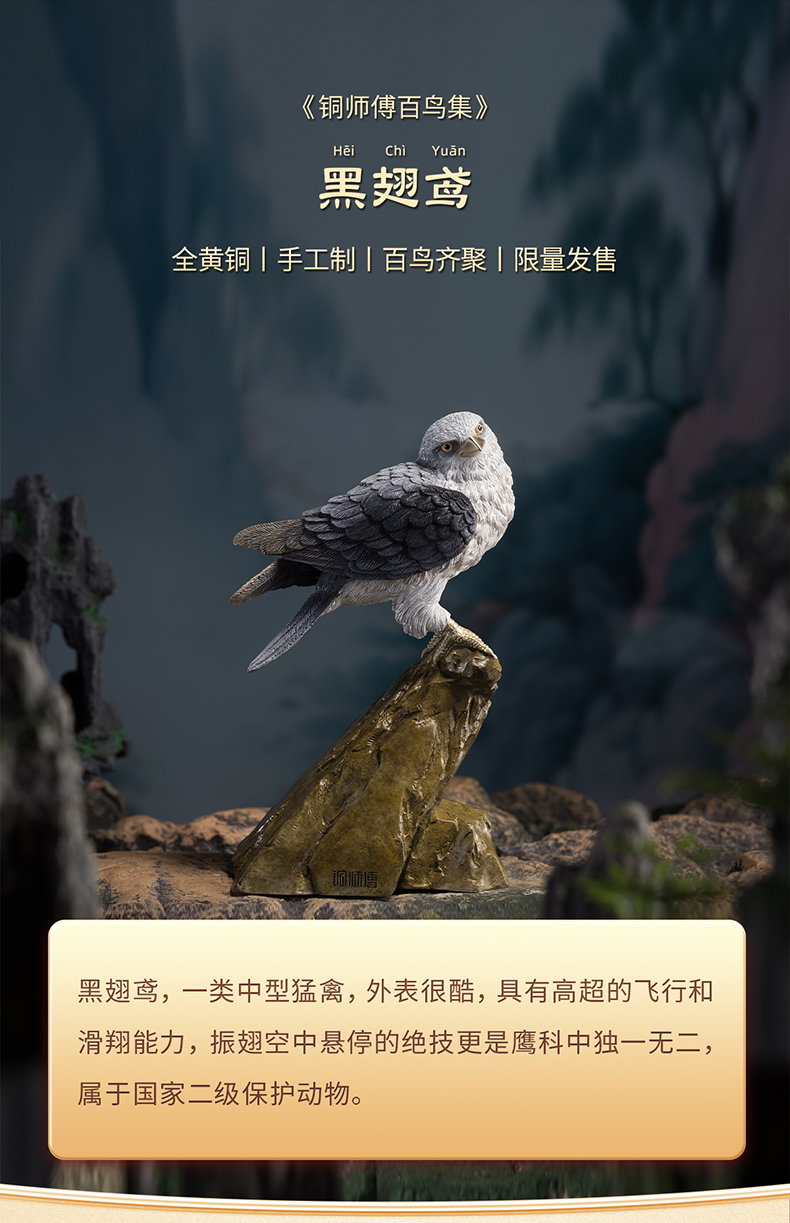 铜师傅《铜师傅百鸟集》之黑翅鸢 客厅桌面铜鸟摆件 家居工艺品
