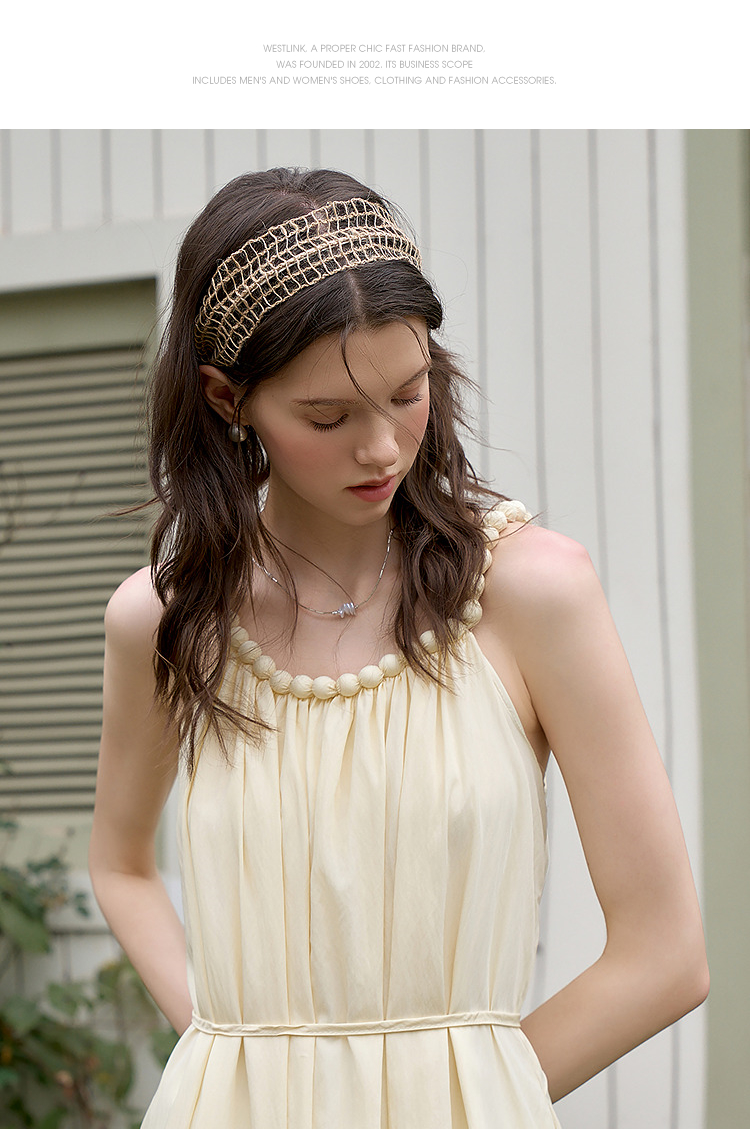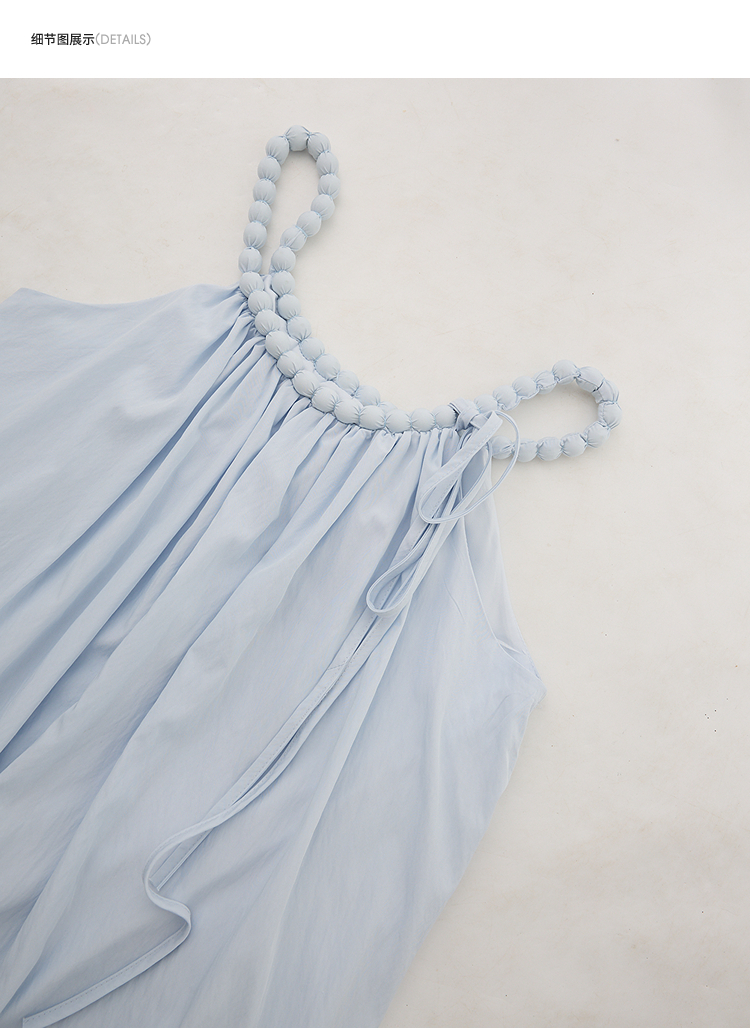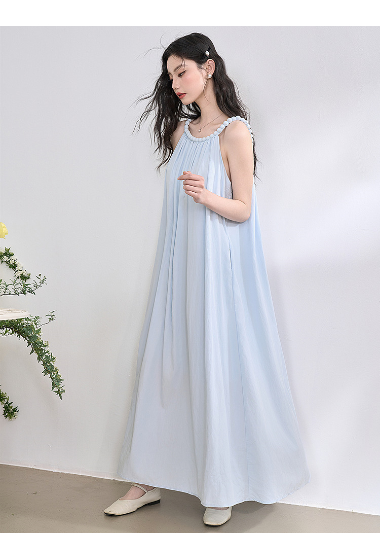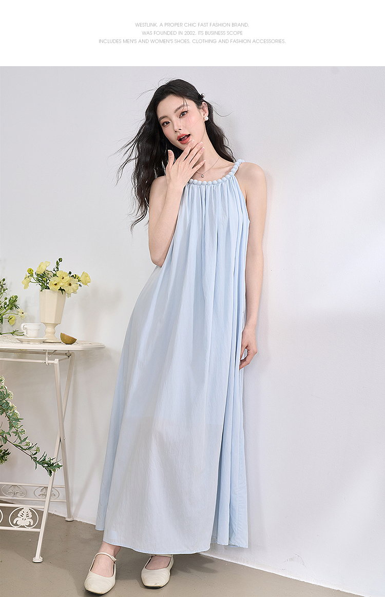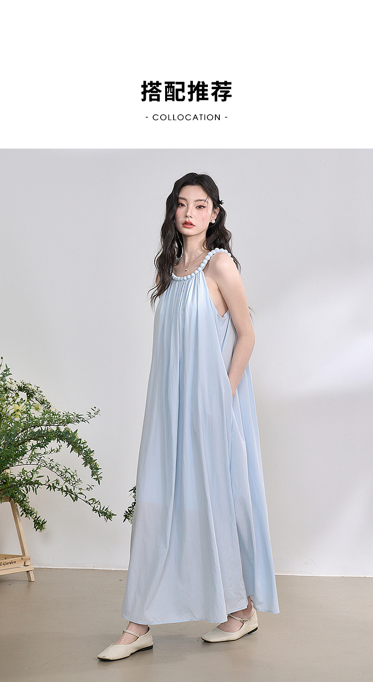 西遇法式挂脖连衣裙女新款海边沙滩度假风无袖收腰长裙D0050492