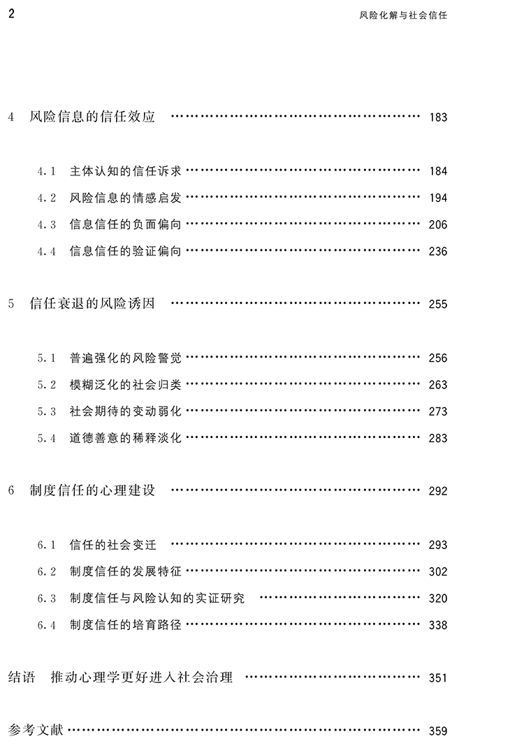 本书从社会心理机制的角度探索信任与风险的社会放大之间的关联,提出风险沟通与管理应当进入科学知识与社会主体特征相结合考虑的新阶段,风险的可接受性问题不再仅是科学计算和推演的问题,还与信任、公平、正义等人文因素紧密相关。考察导致公众风险认知和行为被强化或减弱的因素,探讨如何最大程度地降低由风险的社会放大所带来的负面效应。从社会心理角度探索环境风险的社会放大,考察信任作为一种机制如何在其中运行和发挥作用,并有助于完善风险的沟通和管理。对制度信任心理建设,基于理论及实证研究,提出了操作性建议。切实为社会治理提供了学术性支持,体现了心理学的社会担当。