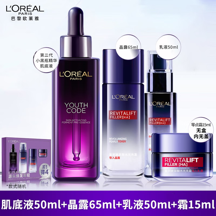 欧莱雅黑精华套包精华50ml+水65ml+乳50ml+霜15ml