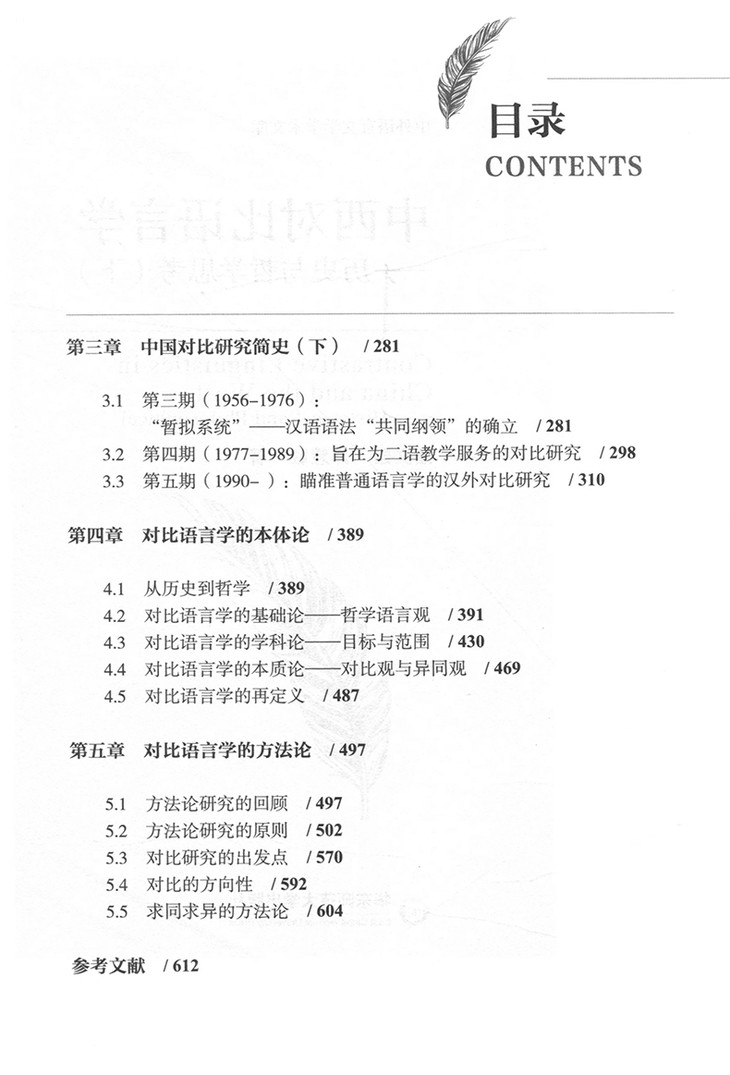本书内容包括:西方对比研究简史、中国对比研究简史、对比语言学的本体论、对比语言学的方法论等。第一次在国际范围内系统总结了西方的对比语言学历史。重新梳理了西方对比语言学史的发展过程,把西方对比语言学的源头往前推了一百多年。并对历史上的重要作家作品及其影响作了分析介绍。同时第一次对对比语言学学科的一些最基本的理论问题集中进行了讨论,在梳理总结前人研究的基础上明确提出了自己的主张。