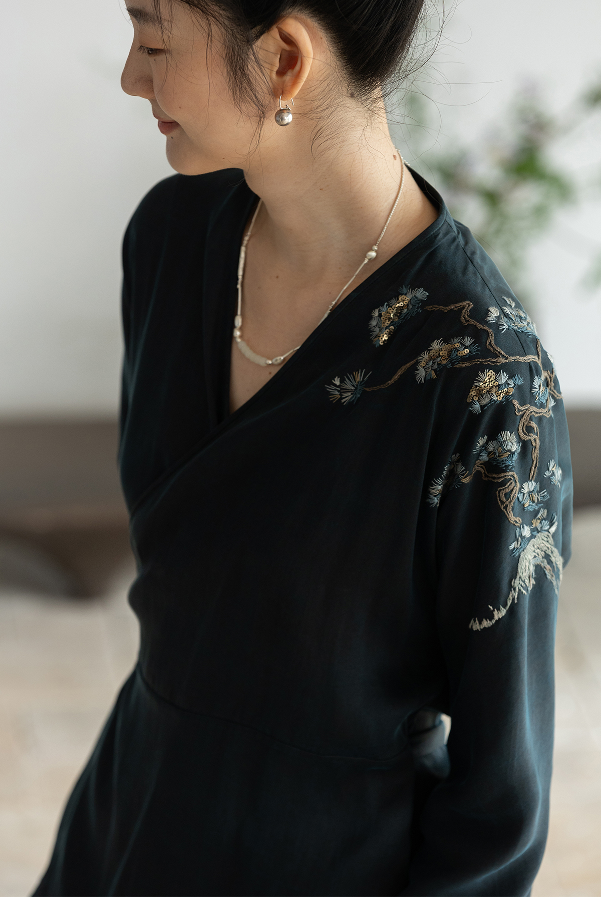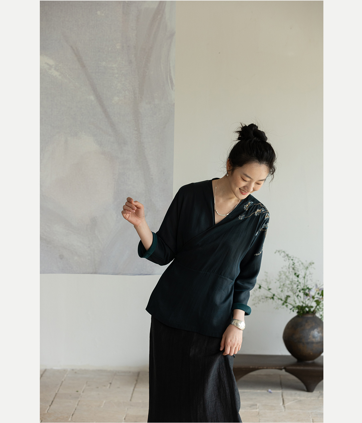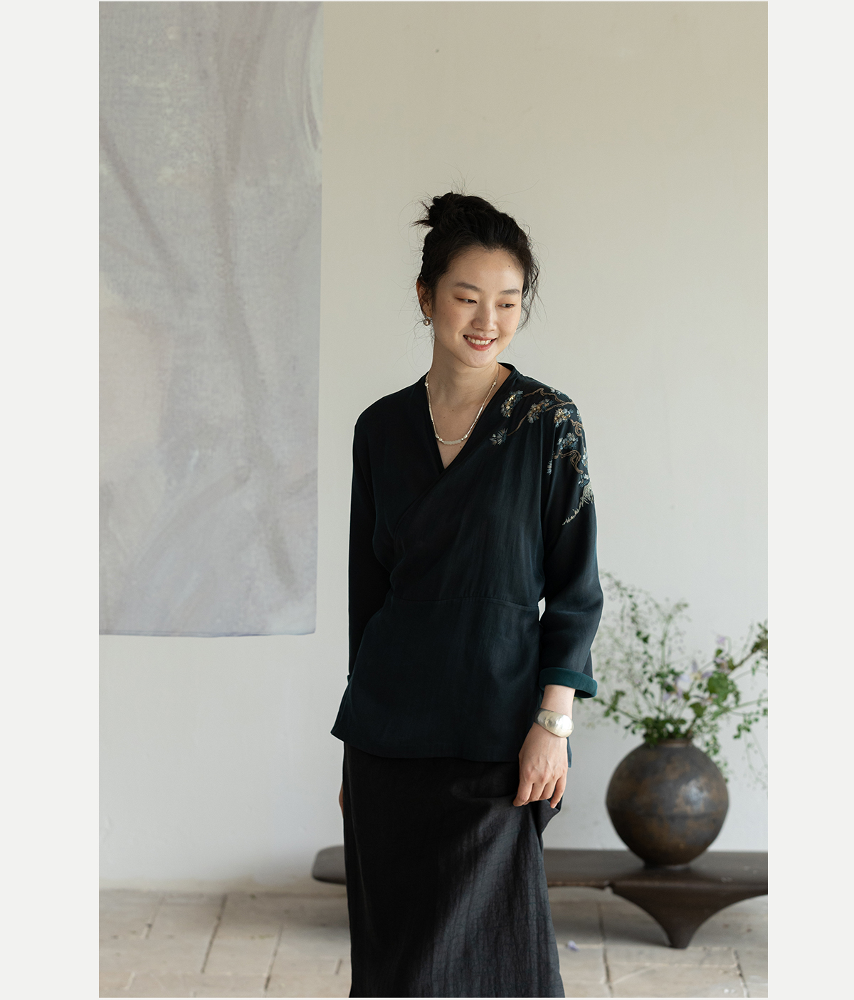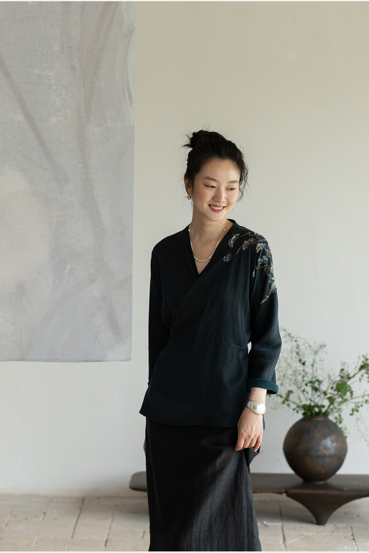 牧衣游原创 19姆米香云纱手工刺绣外套东方文雅禅意真丝开衫 幽幽