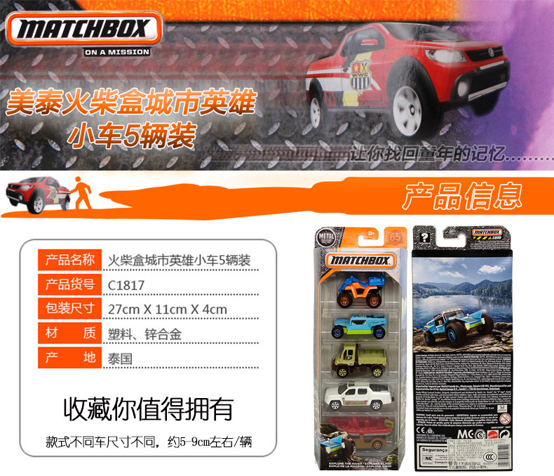 火柴盒城市英雄小车5辆装C1817