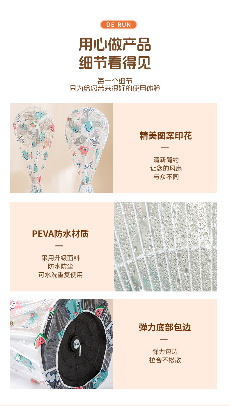 PEVA卧室电风扇罩台式落地式全包套头防水袋子保护套风扇防尘罩