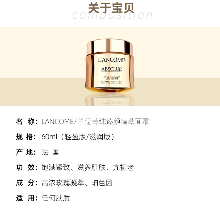 法国兰蔻菁纯面霜60ml(轻盈型/滋润型)