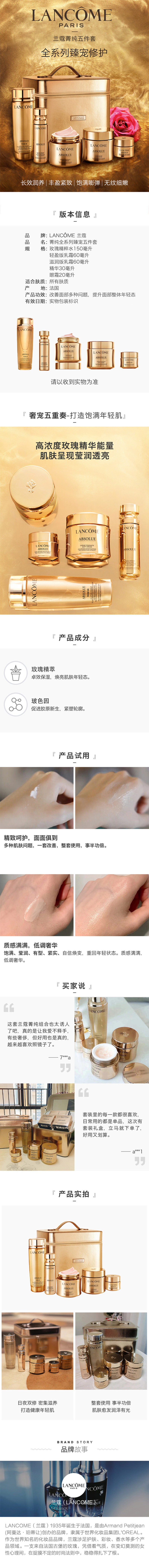 兰蔻 菁纯全系列臻宠五件套盒(玫瑰精粹水150mL+轻盈版乳霜60mL+滋润版乳霜60mL+精华30mL+眼霜20mL)