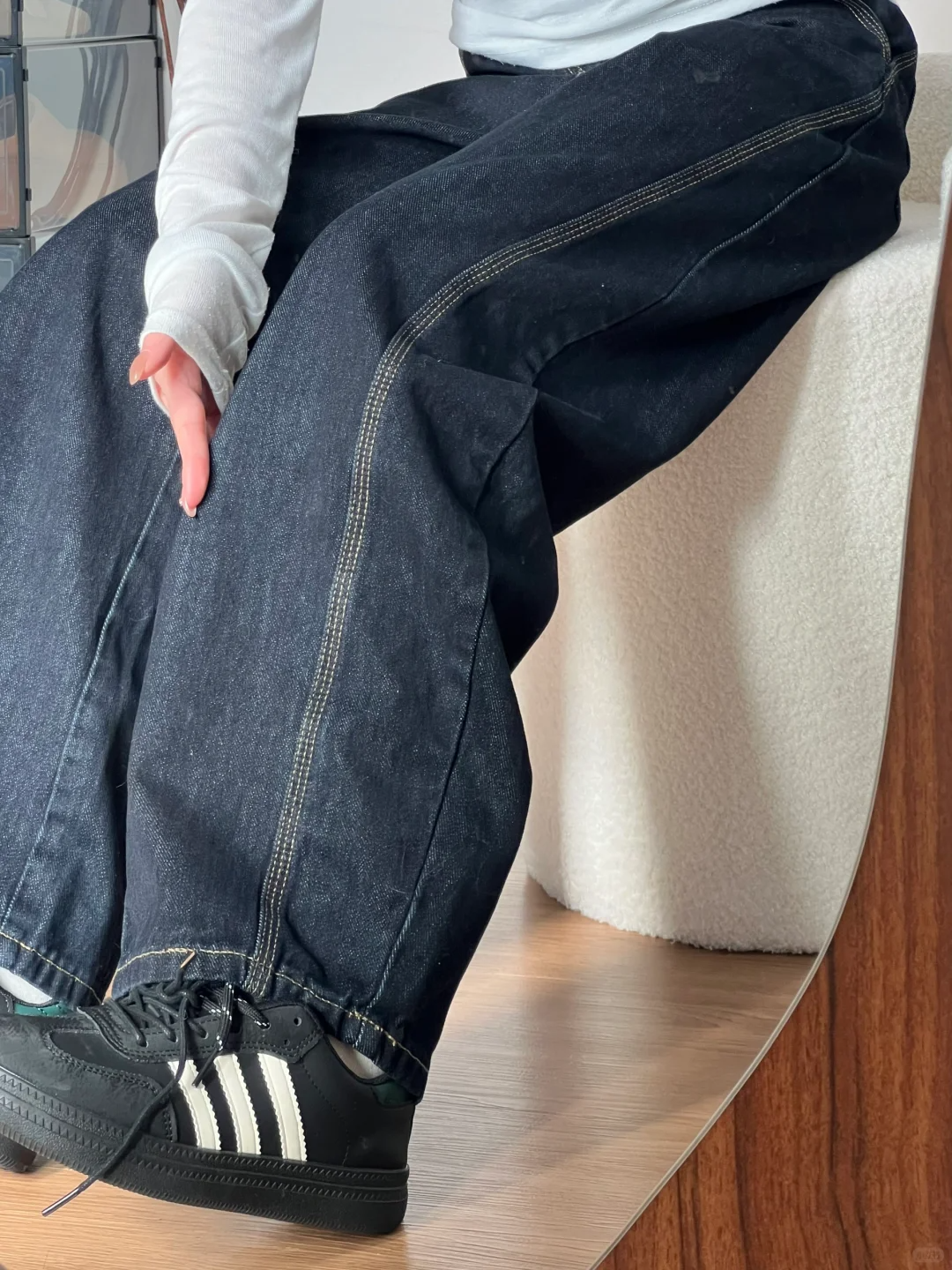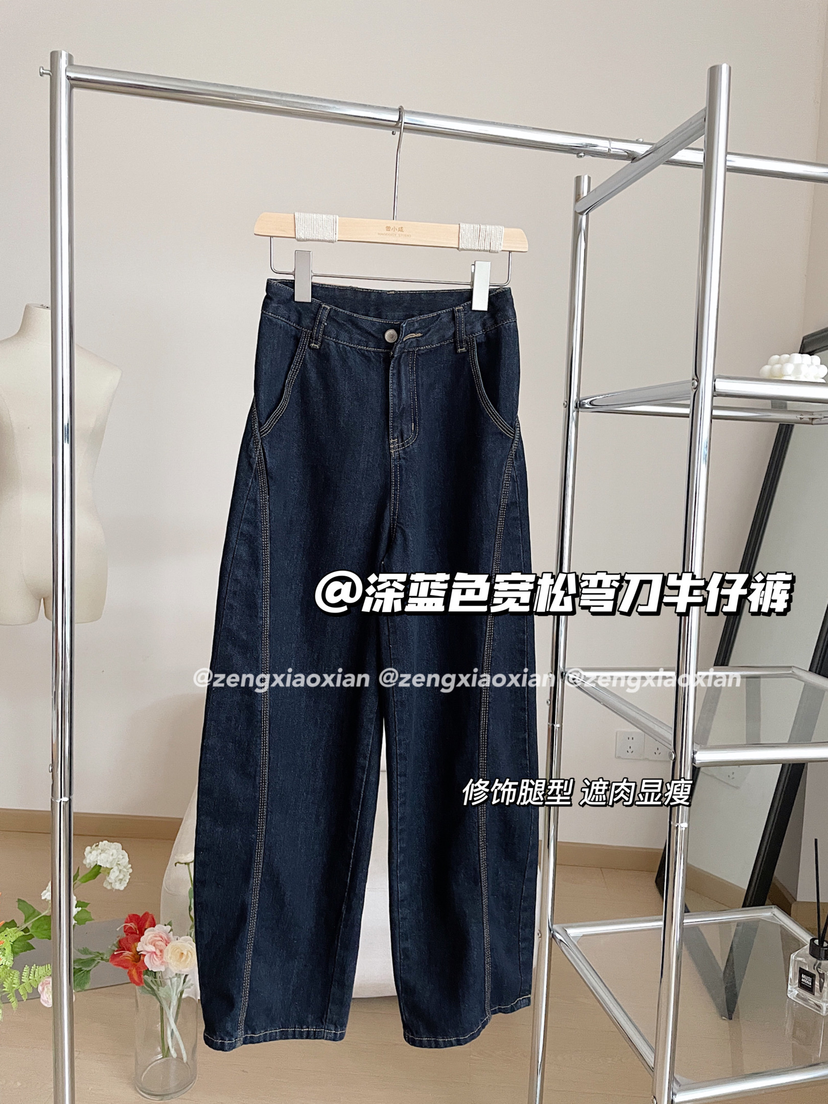 <曾小咸推荐> 深蓝色直筒弯刀牛仔裤 日常159/件 活动价139.99/件!!明天恢复原价,下单要抓紧!!
