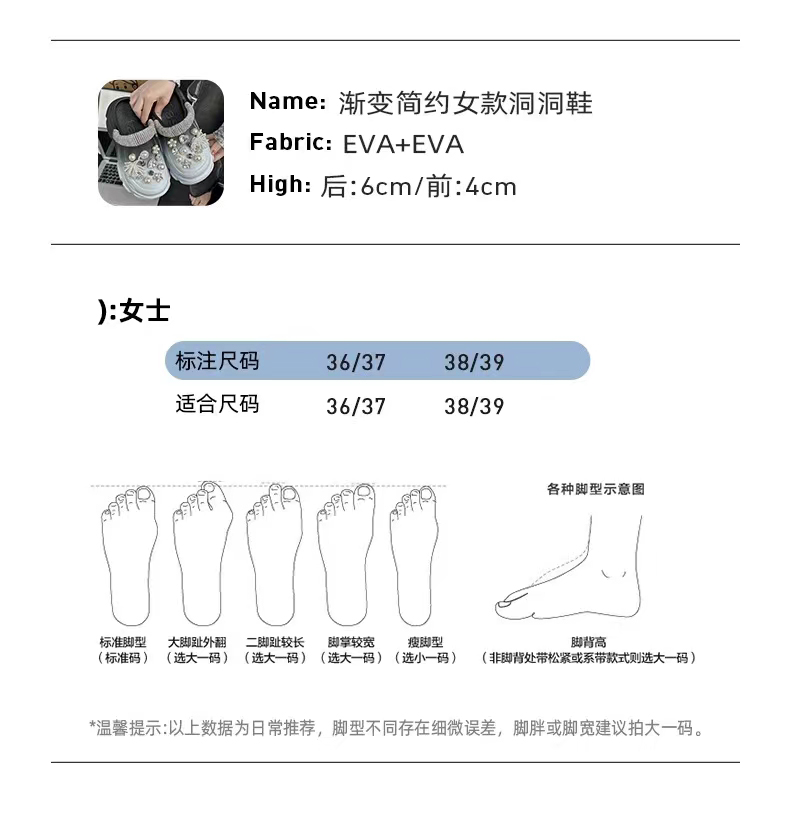 【特价39元】女士DIY渐变时尚简约洞洞鞋【WG24233】