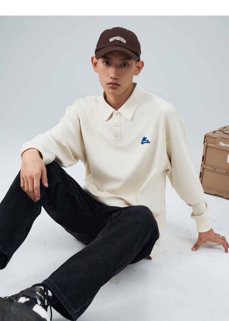 西遇长袖POLO领T恤男新款简约通勤针织面料上衣11832218