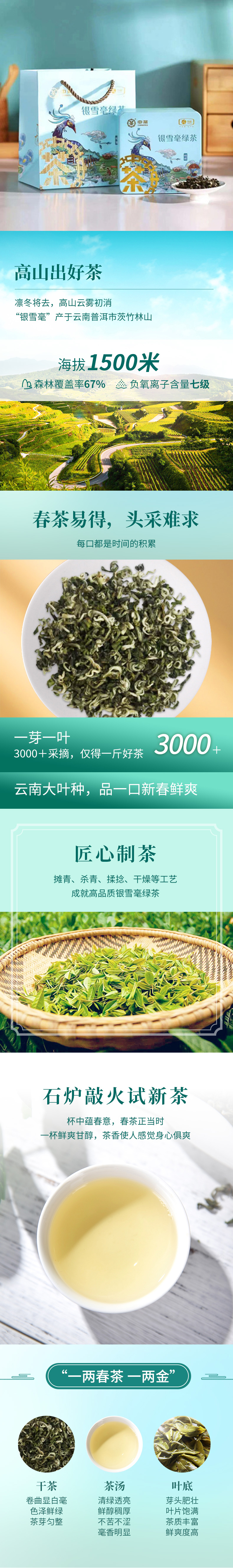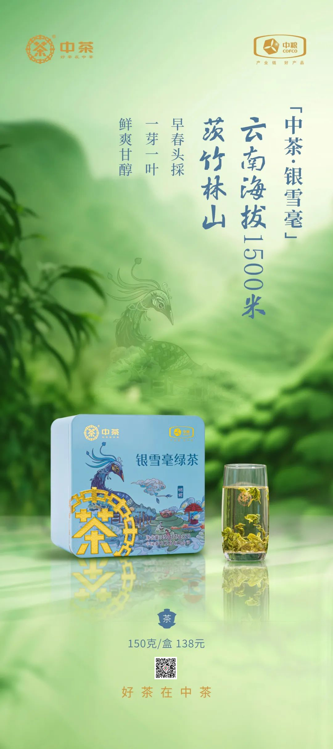 中粮-中茶2024年 (明前头采) 云南普洱市茨竹林山银雪毫高山大叶种绿茶 150g/盒 /门店款