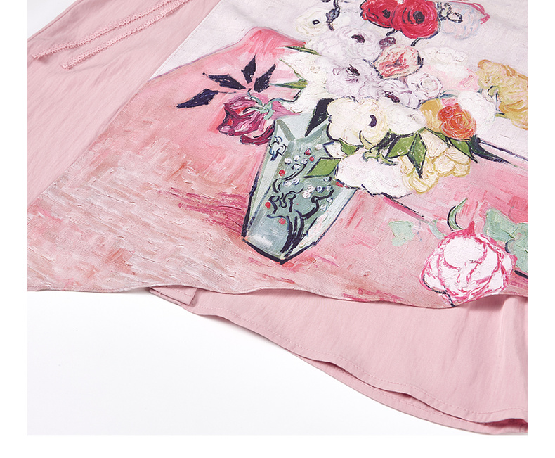 两三事梵高文艺永恒生机2025夏新款法式蕾丝拼接印花吊带裙连衣裙