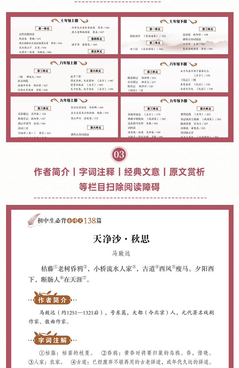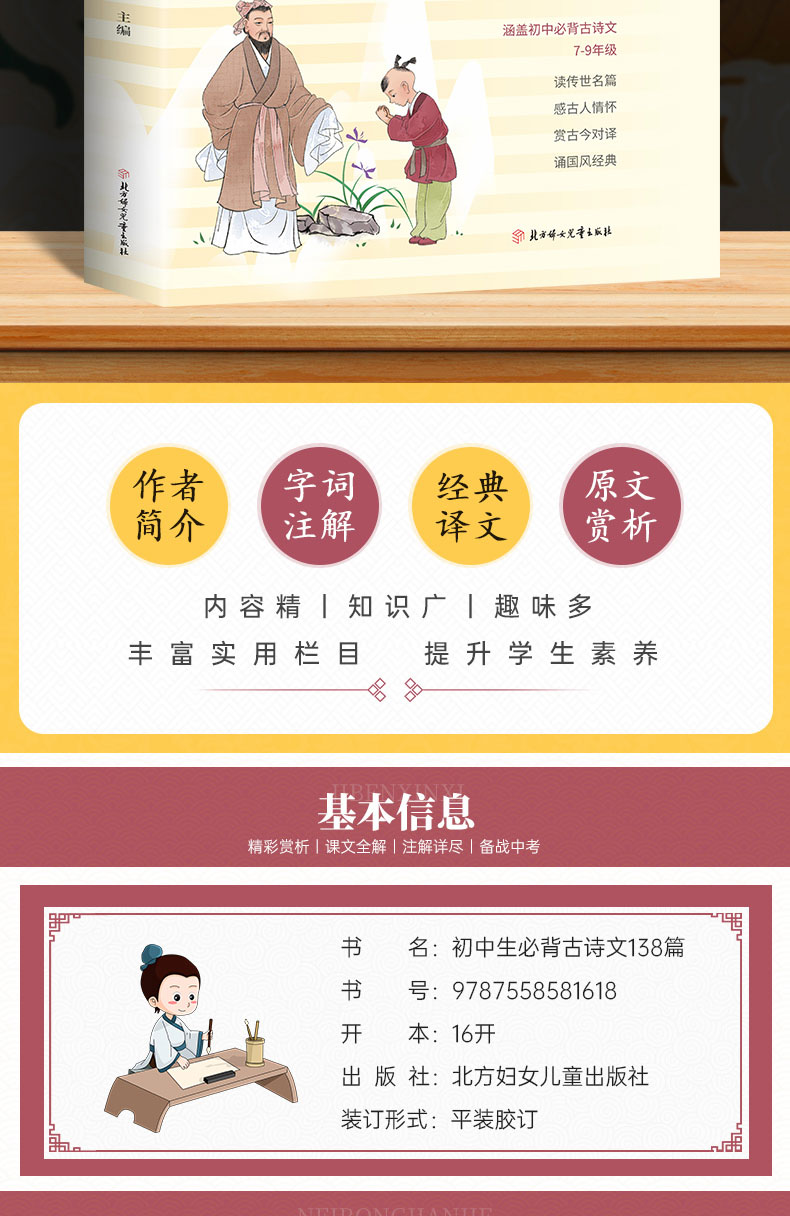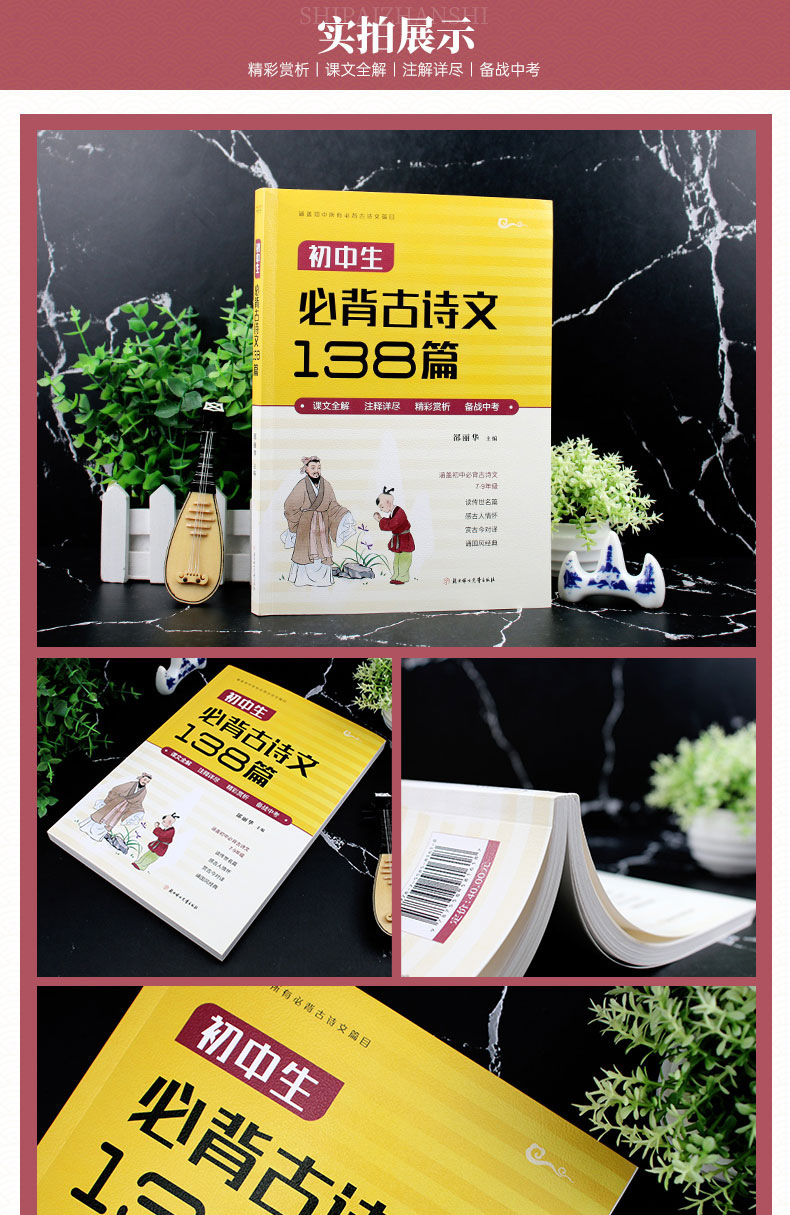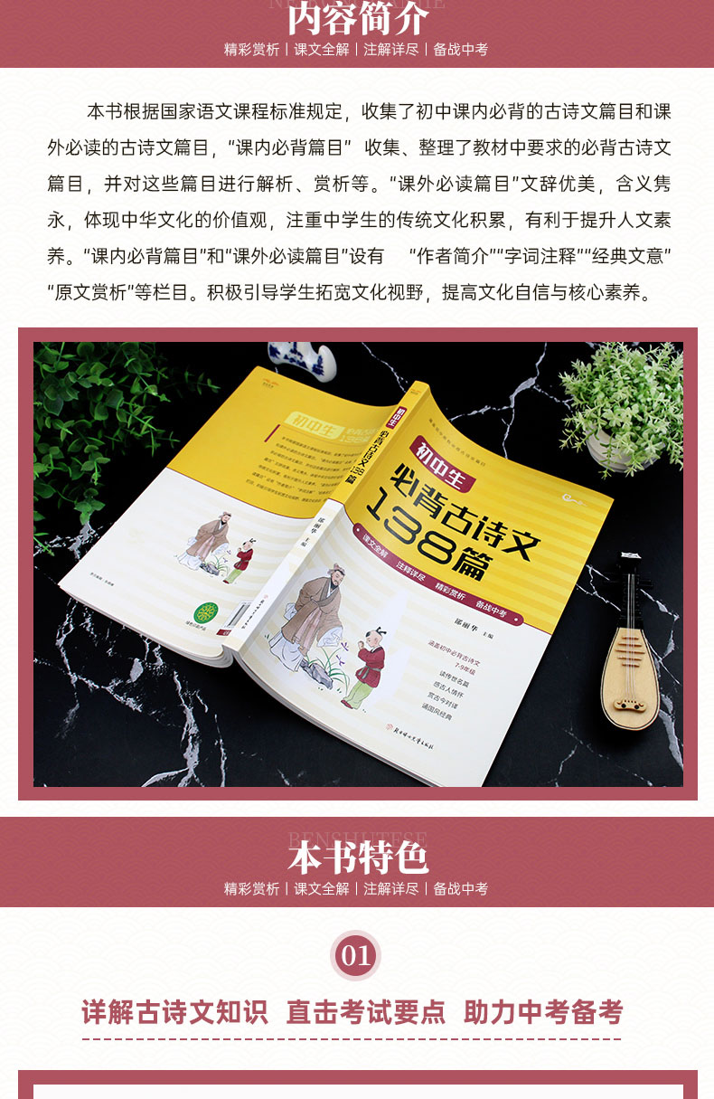 初中生必背古诗文138篇涵盖初中所有必背古诗文篇目七年级八年级九年级初中阅读书籍通用版精彩赏析课文全解注解详尽备战中考书籍