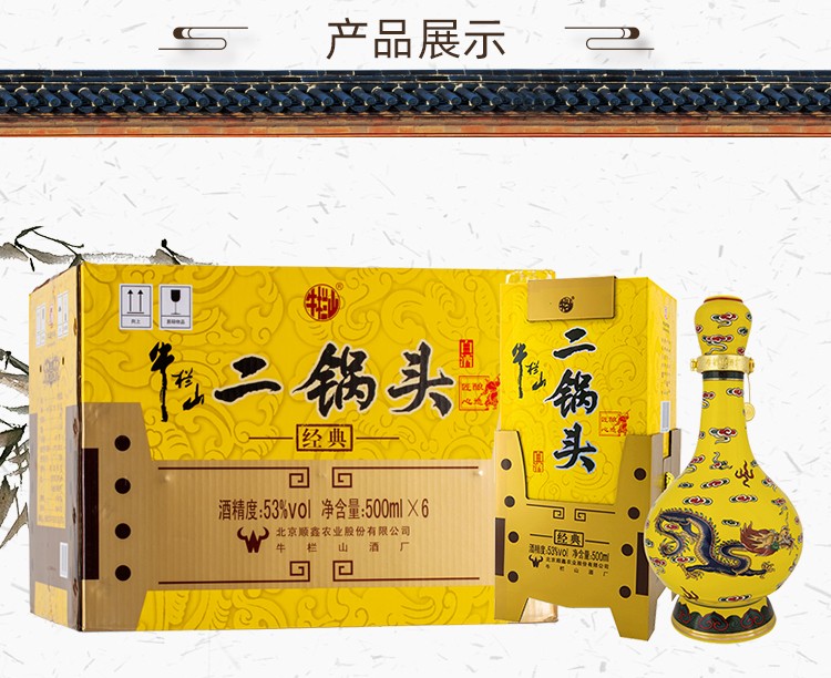 【自营】牛栏山 经典黄龙 清香型白酒 45度/53度 500ml*6瓶 整箱装