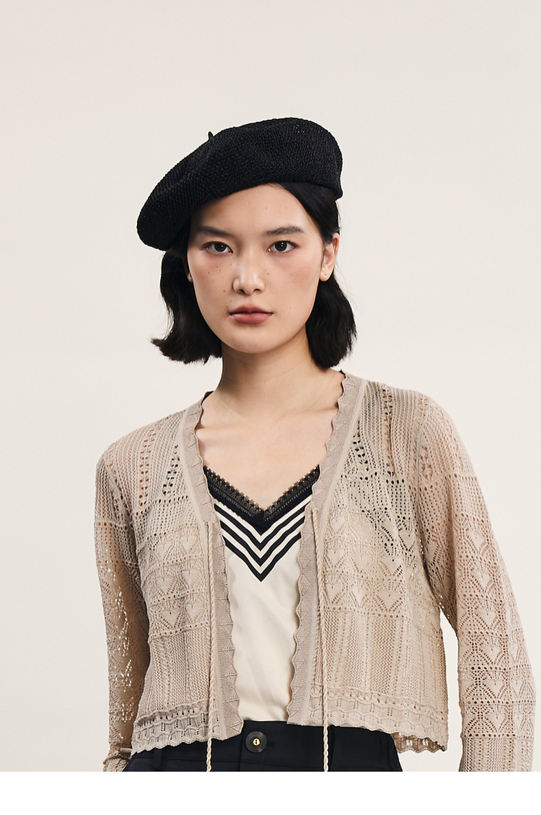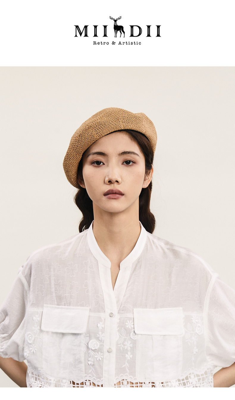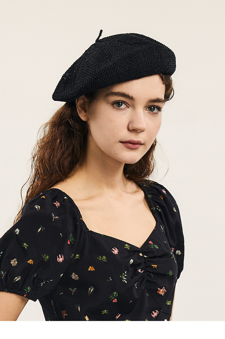 谜底贝雷帽女士2024年夏季新品复古学院风时髦出游帽子242MQ0904