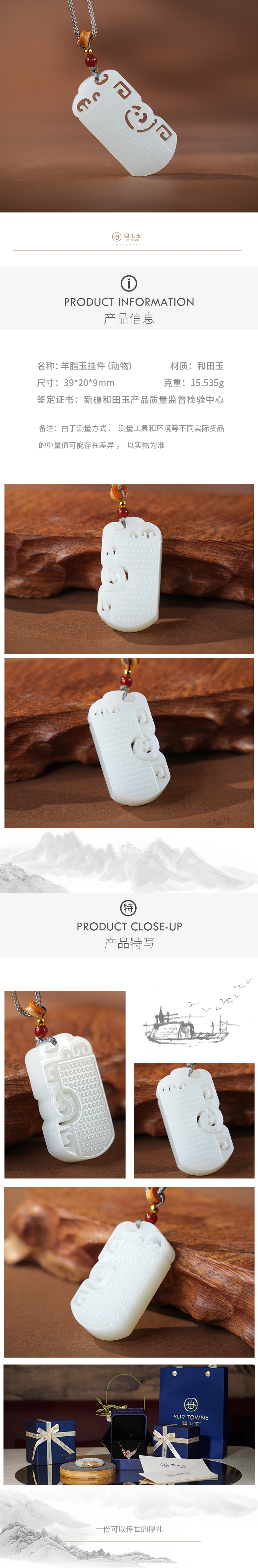 【吉令】羊脂白玉平安无事牌