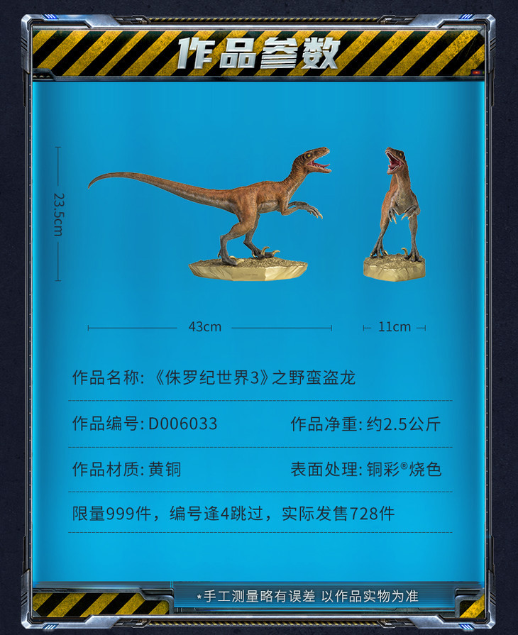 铜师傅 全铜摆件《侏罗纪世界3》之野蛮盗龙 饰品礼品桌面摆件