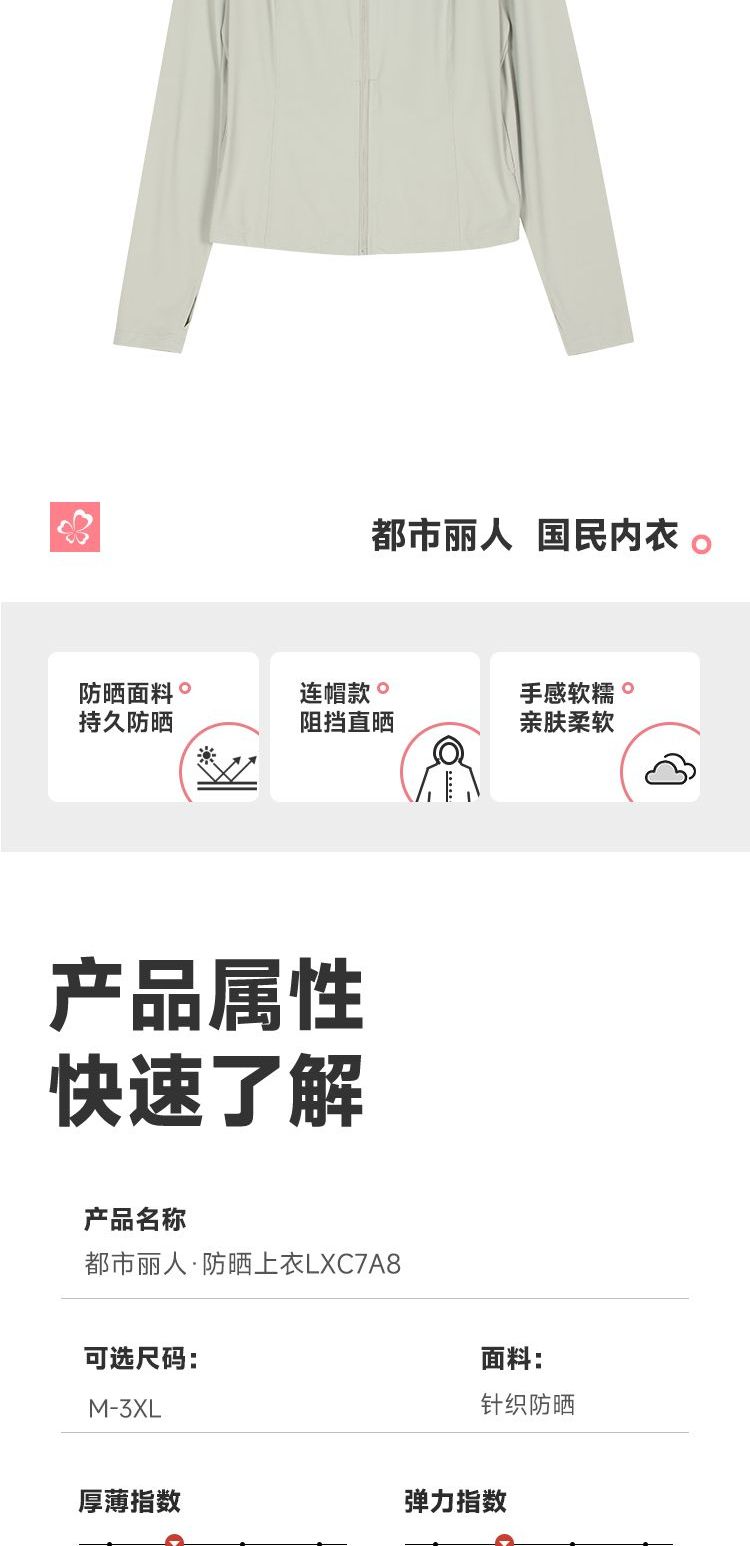 都市丽人防晒衣薄针织防晒女士防晒长上衣短袖上衣可外穿LXC7A8