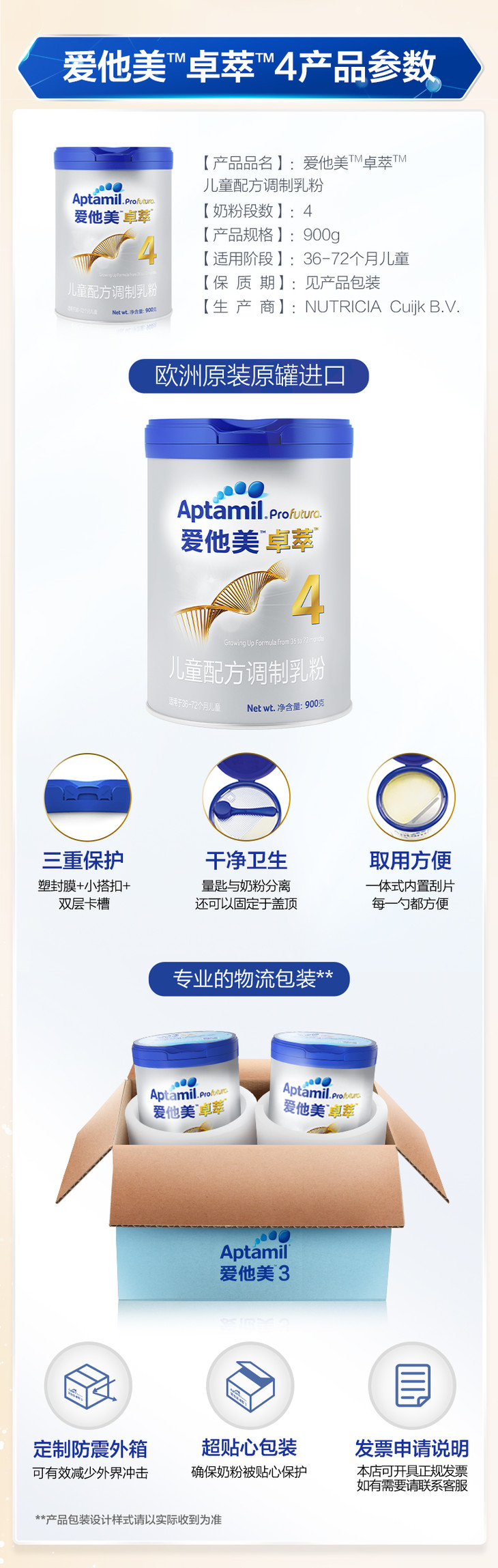 爱他美卓萃儿童配方调制乳粉36月-72月900克