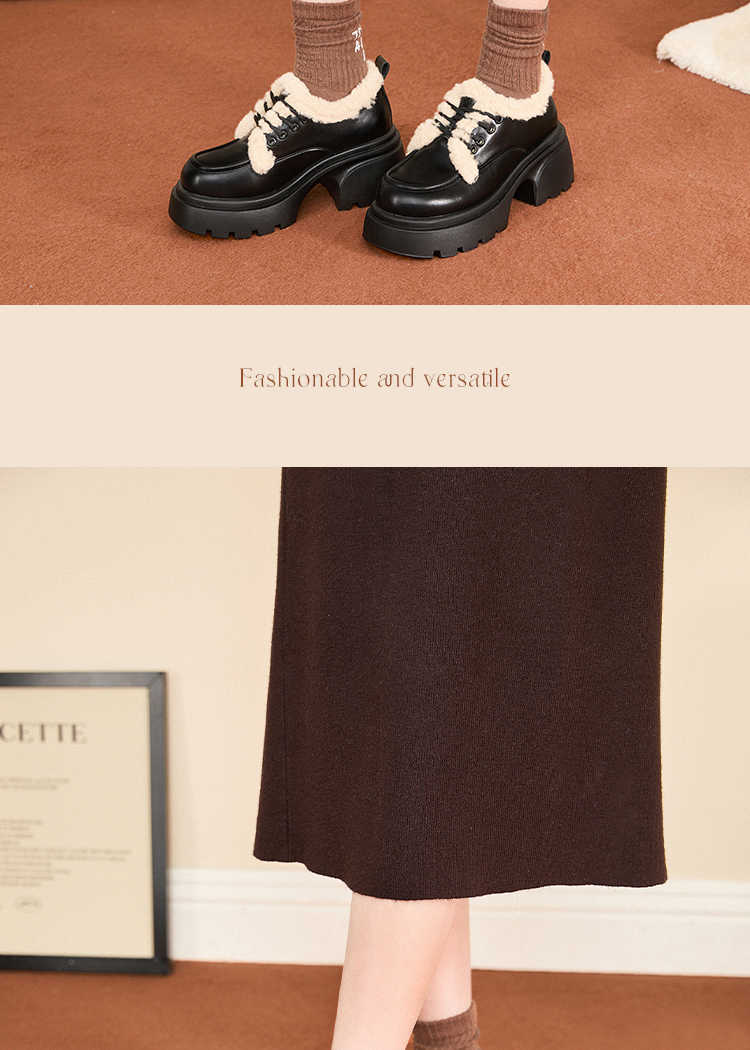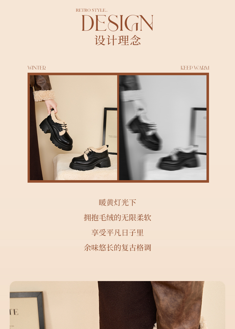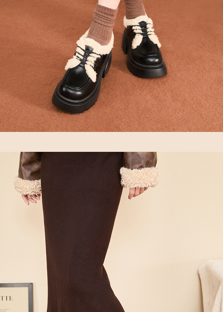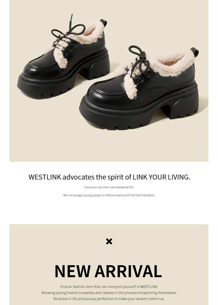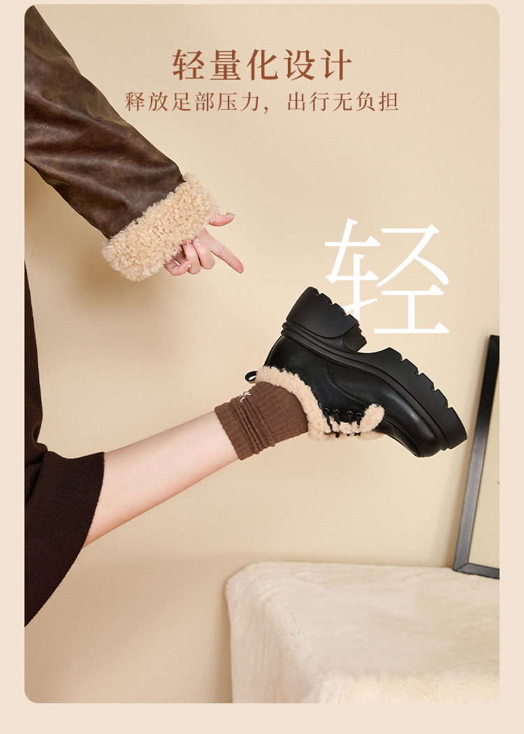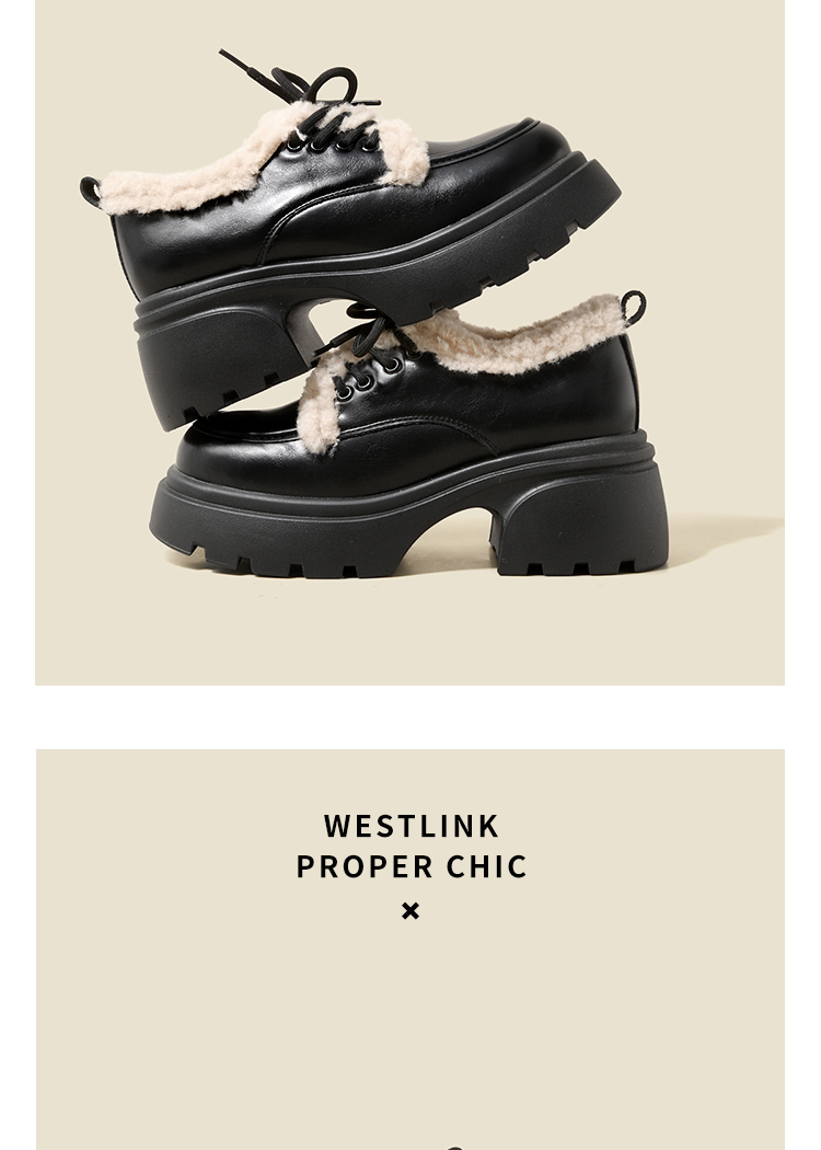 西遇加绒小皮鞋女冬季新款英伦风系带保暖棉鞋增高厚底乐福鞋V0047882