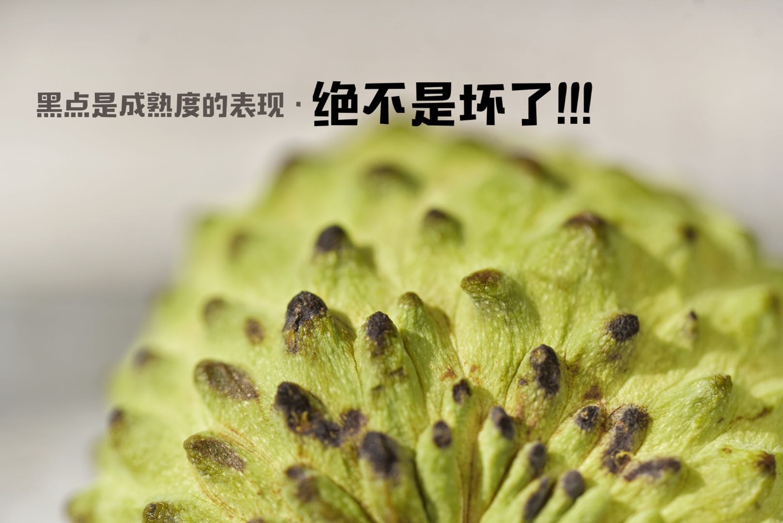 2.原包装放置3-4天后打开,如果还没有熟,请继续捂。成熟后释迦顶端开裂,表皮颜色变黑,触感变软,这时就可以用刀剖开,去皮去籽食用。