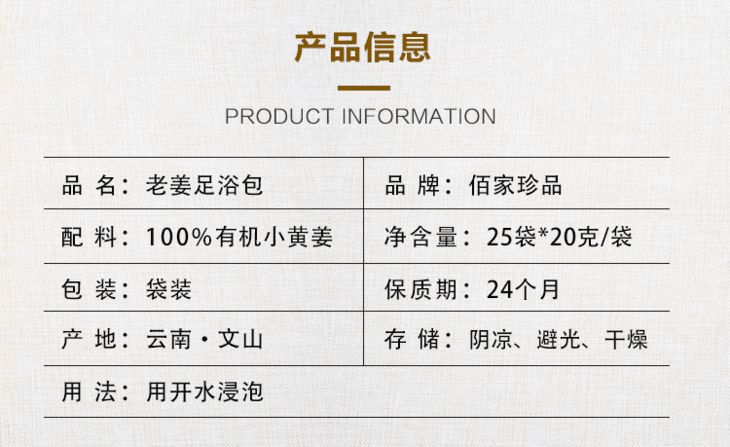 老姜足浴包(有机黄姜加工)20g*25袋 商品缩略图0 老姜足浴包(有机黄姜加工)20g*25袋 商品缩略图1 老姜足浴包(有机黄姜加工)20g*25袋 商品缩略图2