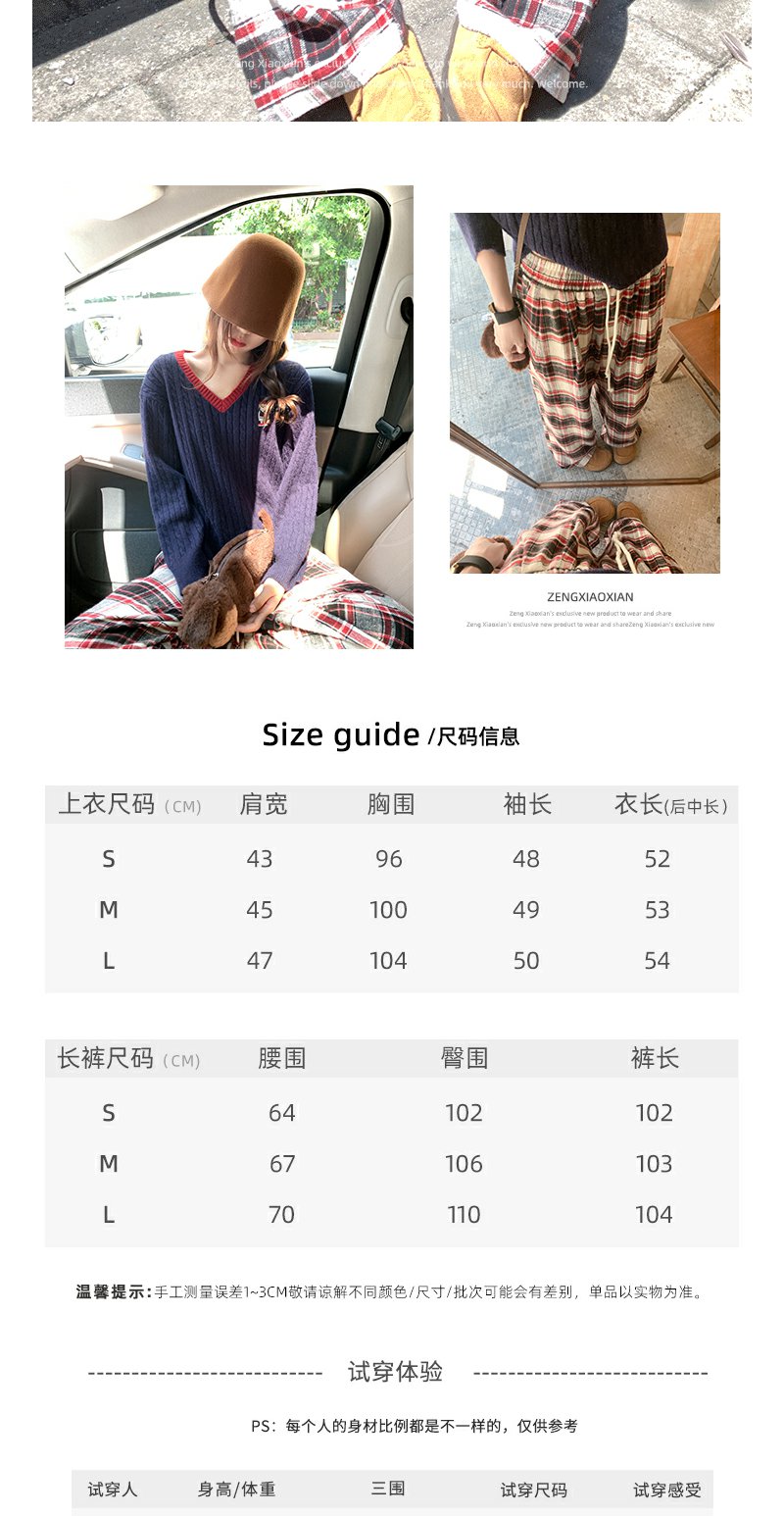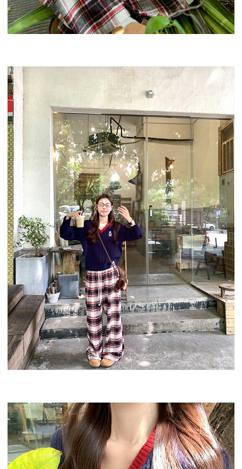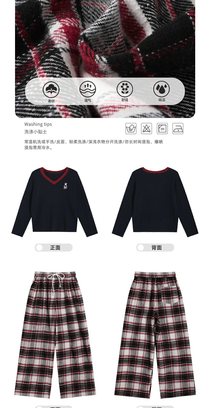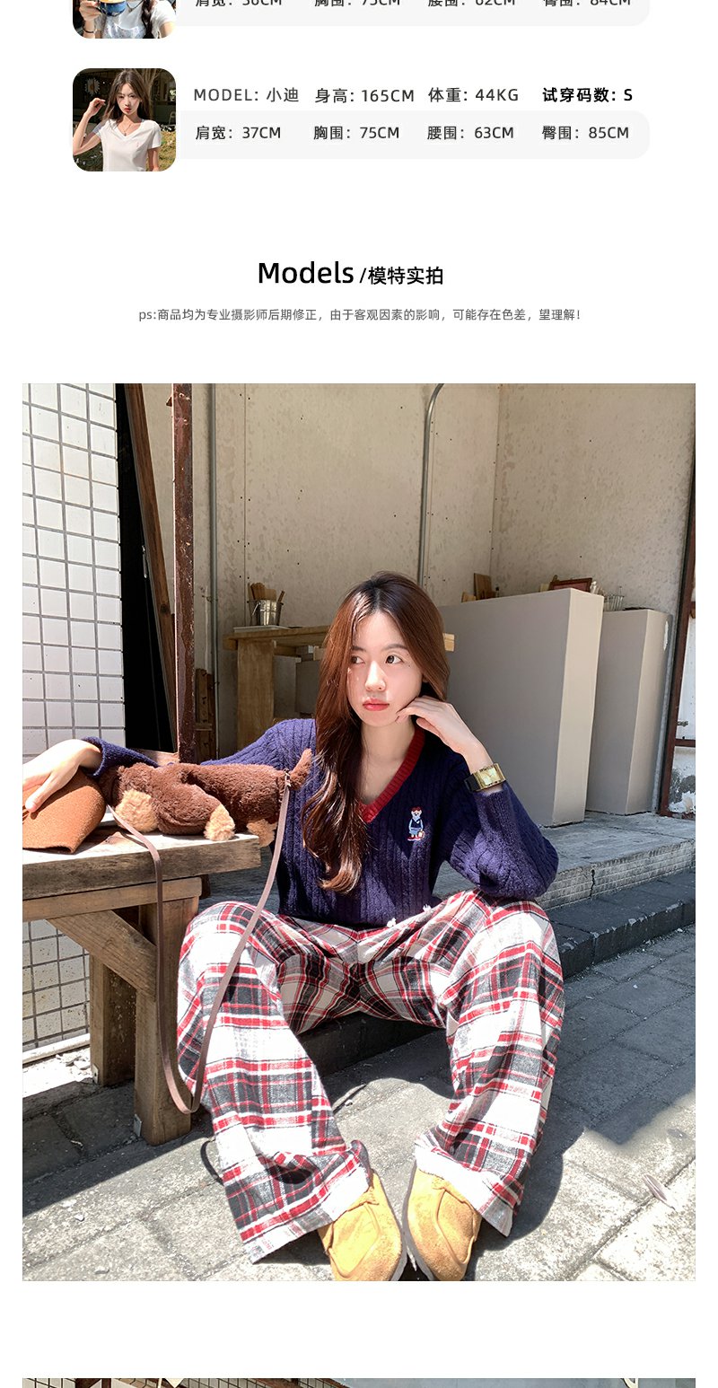 【169元任选2件】现货!藏蓝色V领撞红色边毛衣 or 红色格子休闲裤