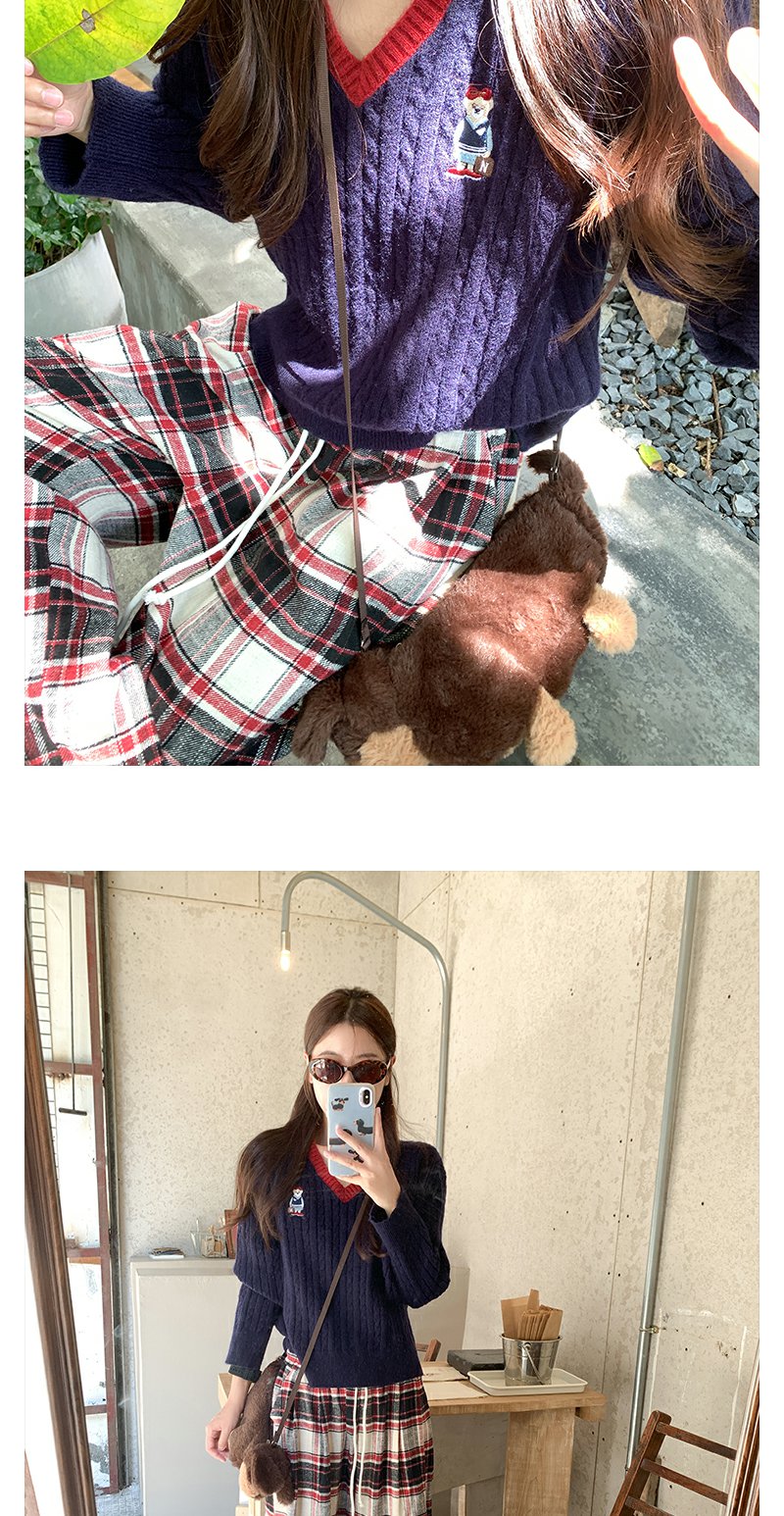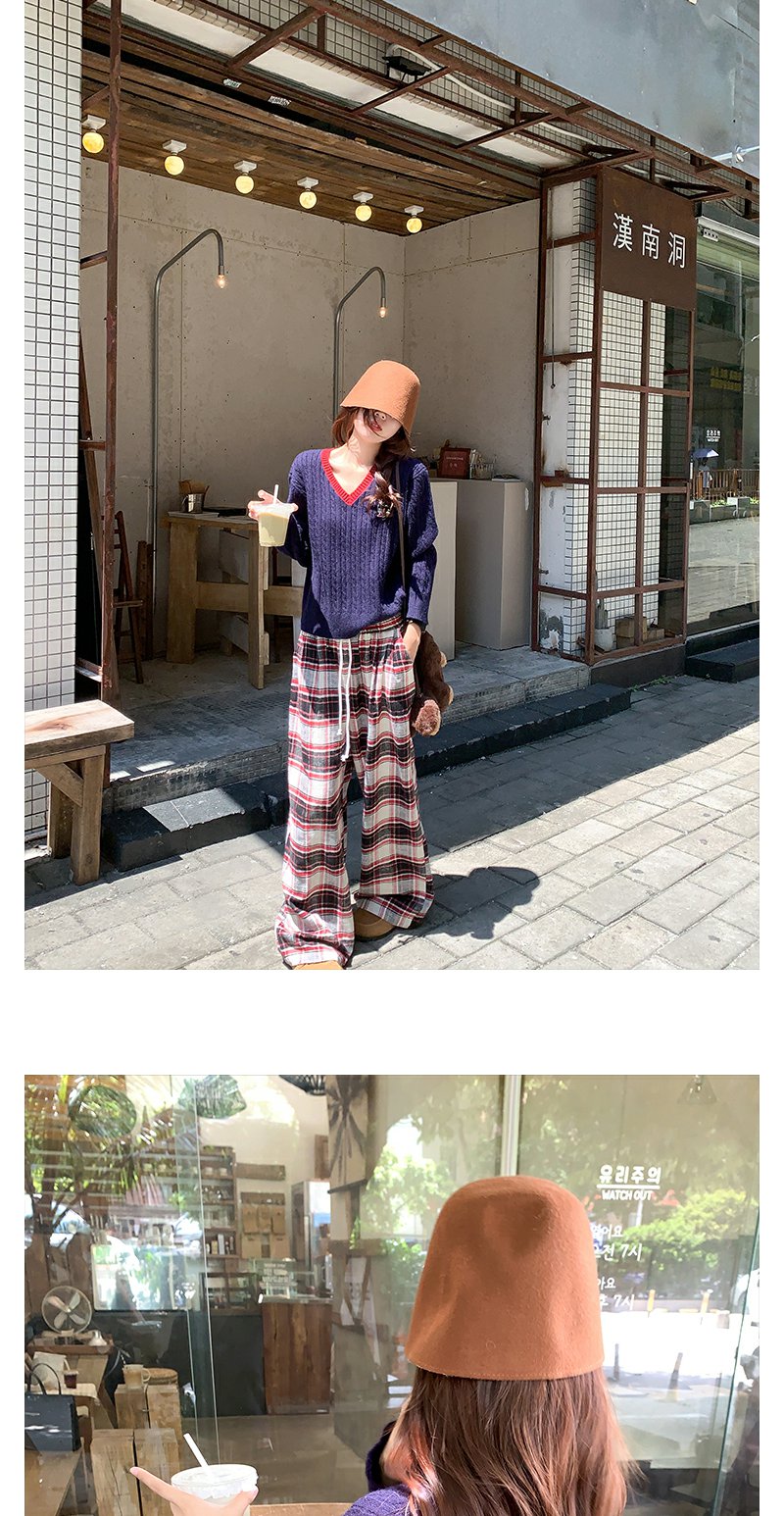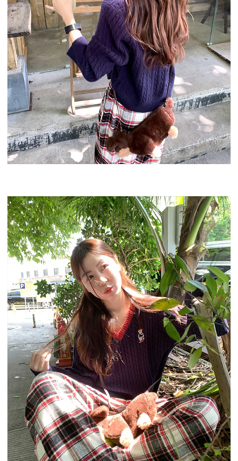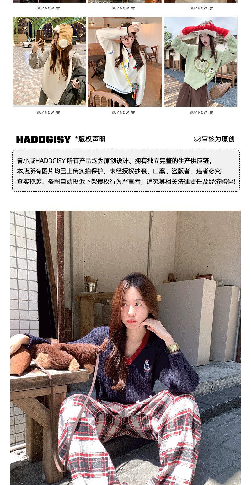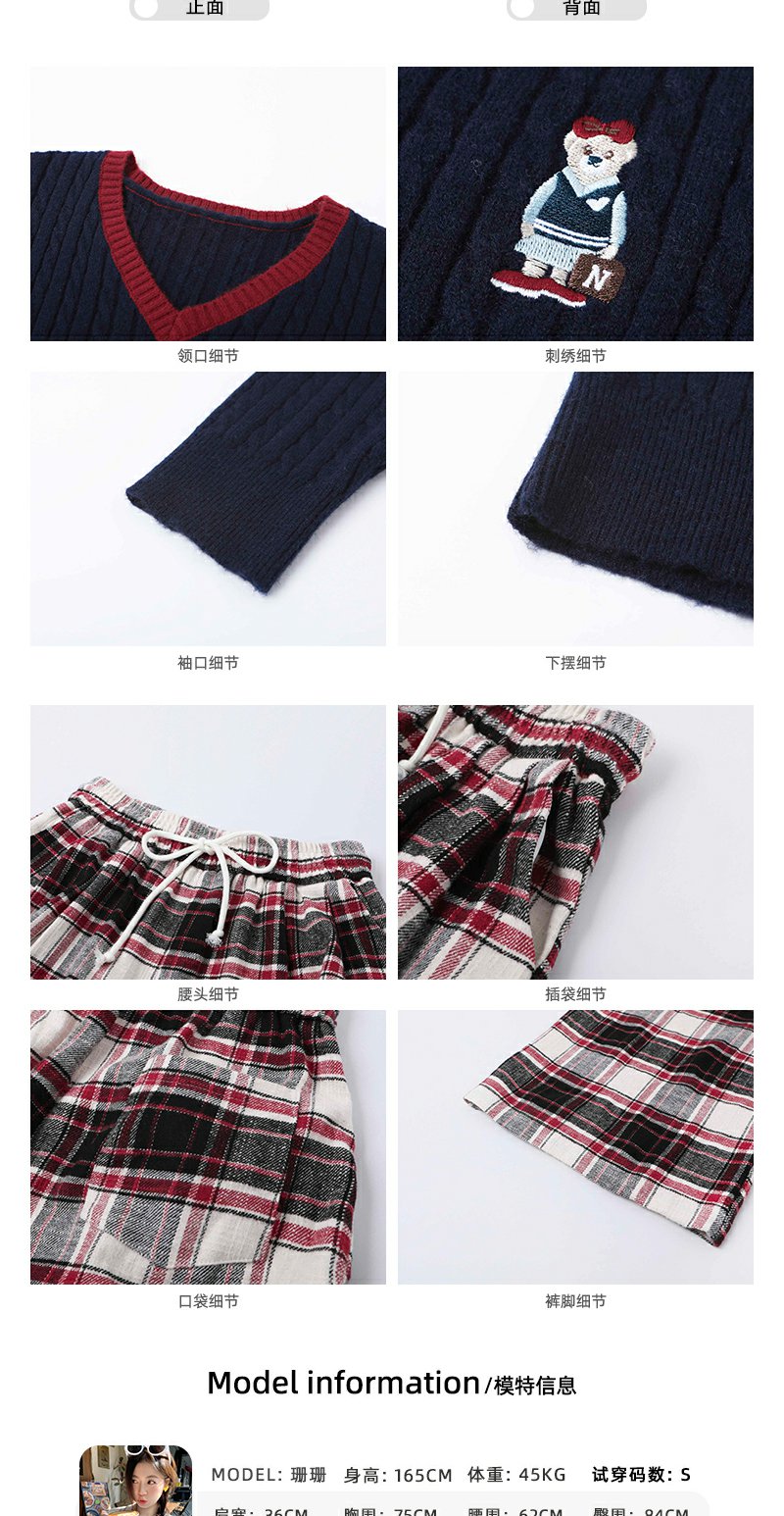 【169元任选2件】现货!藏蓝色V领撞红色边毛衣 or 红色格子休闲裤