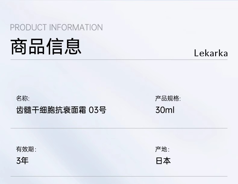 【测试勿拍】【保税直发】Lekarka 逆龄焕肤精华面霜03号 30ml 效期至27年3月