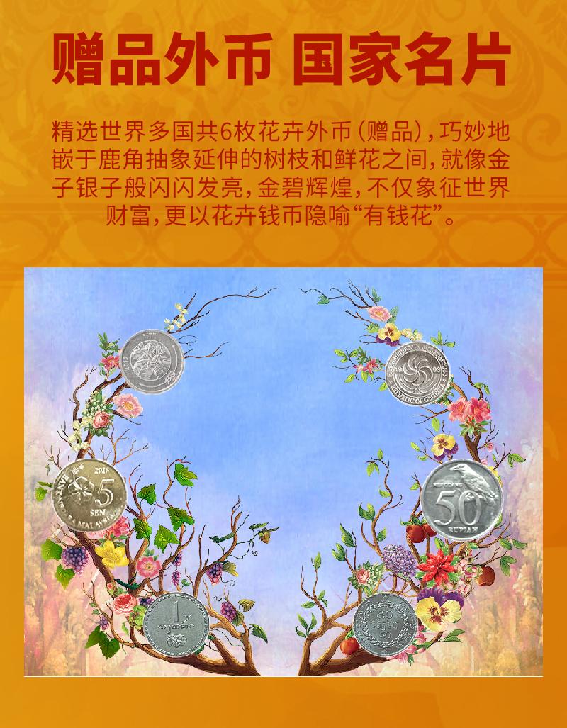 [中钞出品】足银招财鹿·世界花卉外币精选壁画萌版