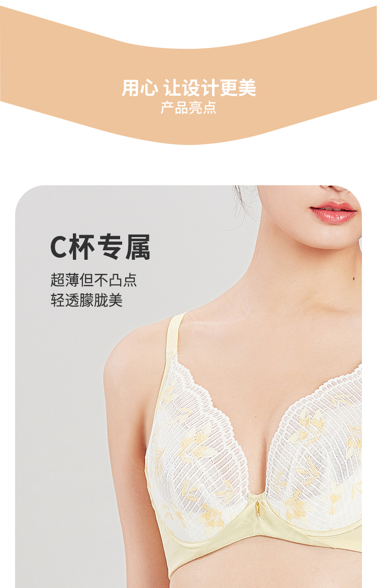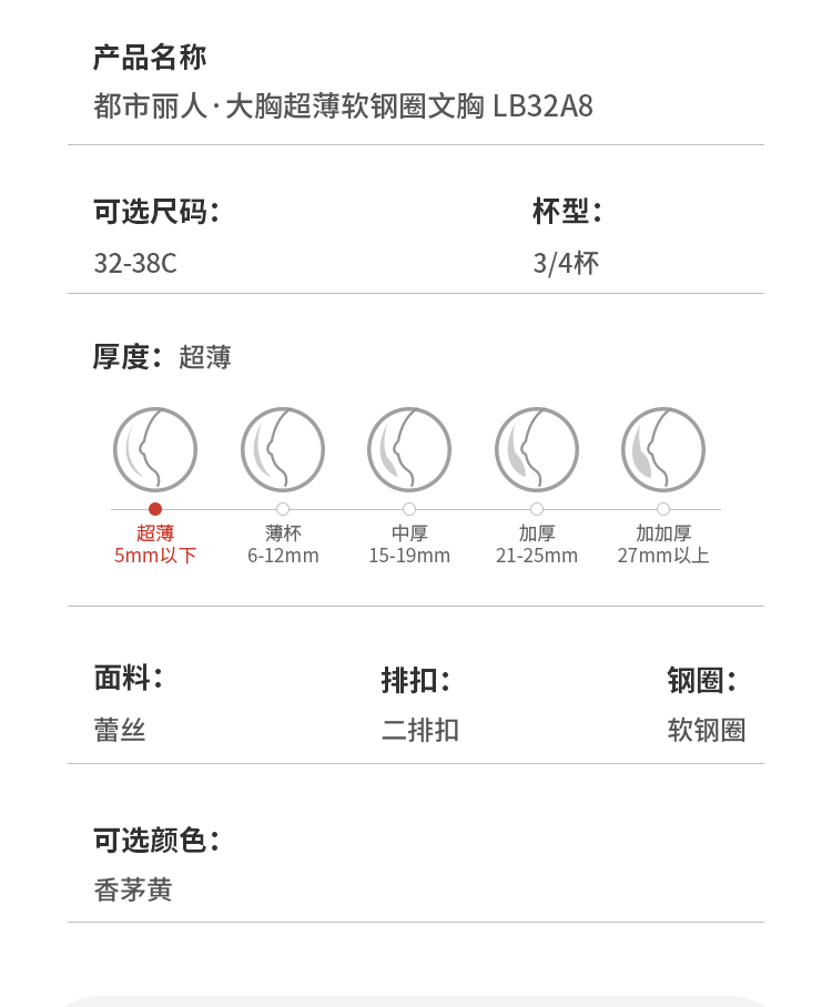 都市丽人自然舒适常规内衣C杯超薄3/4杯蕾丝文胸二排软钢圈LB32A8
