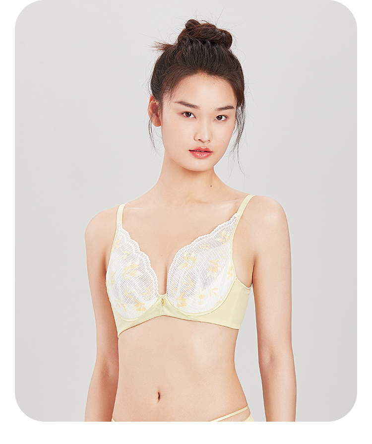 都市丽人内衣自然舒适中厚蕾丝三排扣无钢圈3/4杯文胸LB01H6