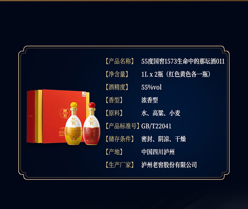 【酒厂直营】55度国窖1573生命中的那坛酒 011/1L*2 泸州老窖官方旗舰店