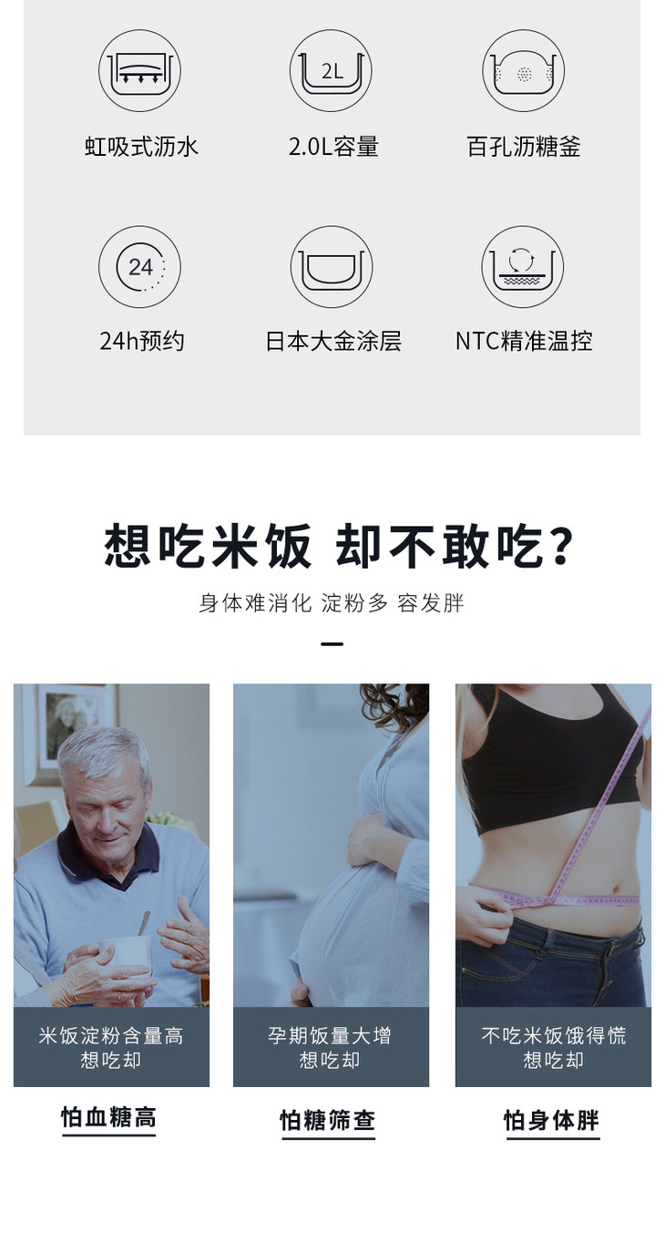 韩国bokuk伯可福低糖电饭煲 家用全自动2L米汤分离电饭锅[福利品]
