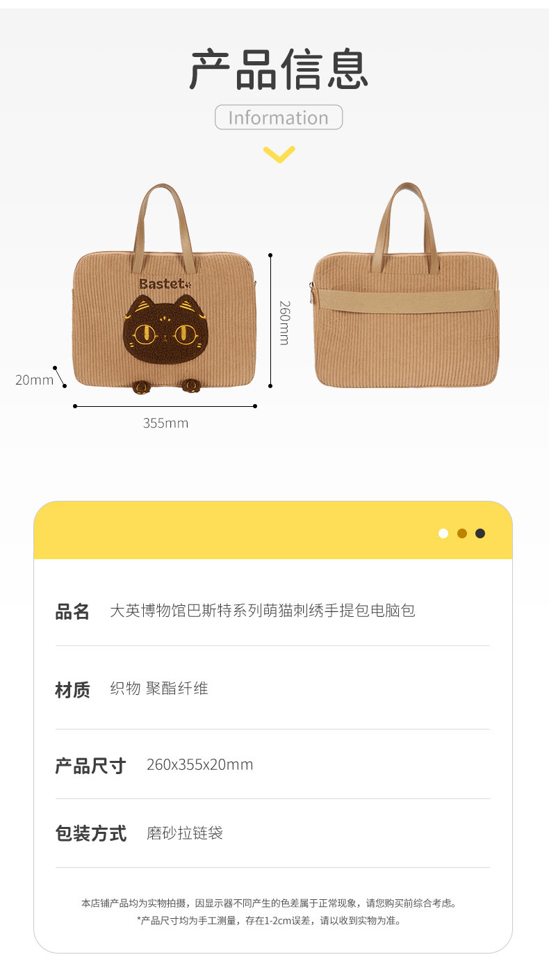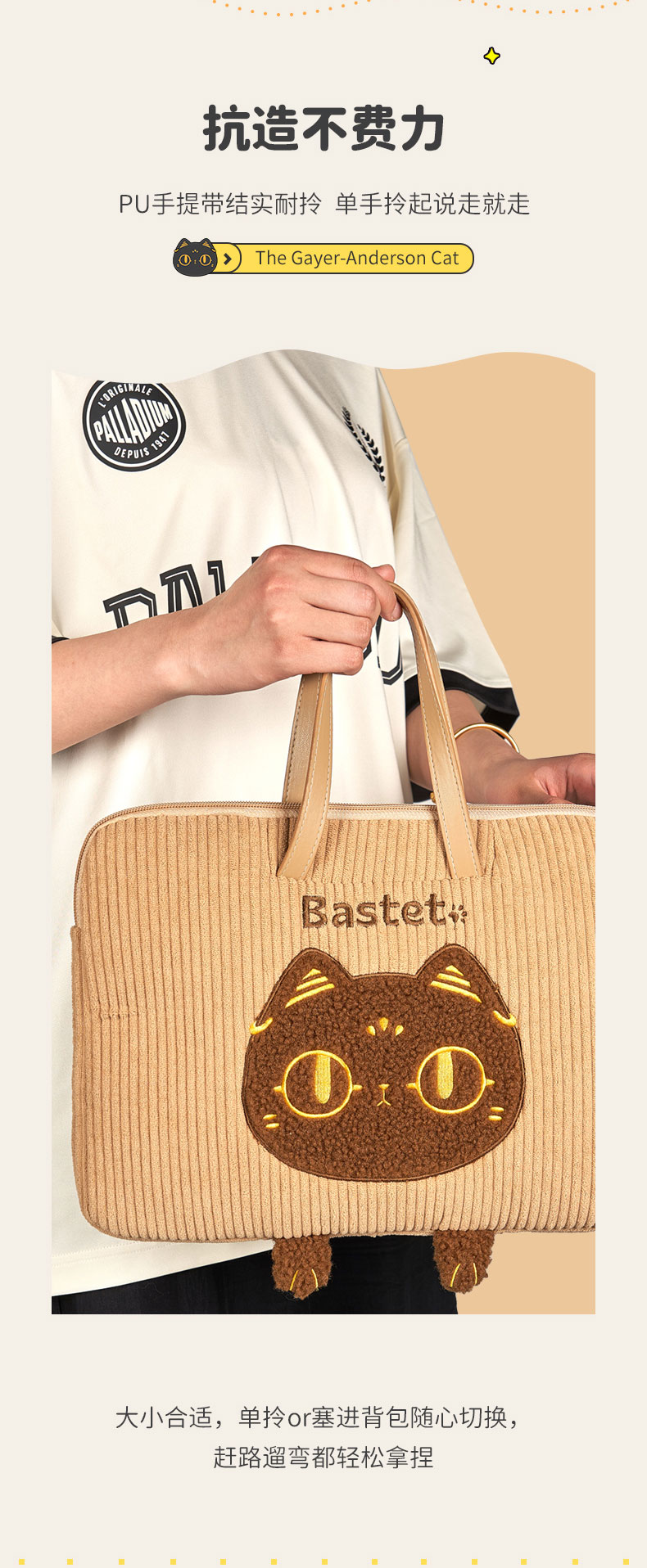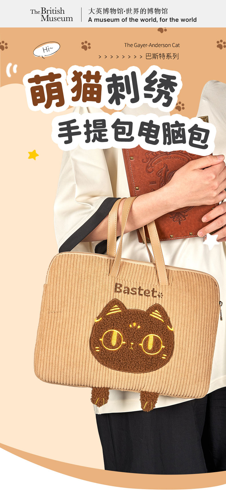 大英博物馆 巴斯特系列 萌猫刺绣手提包 电脑包