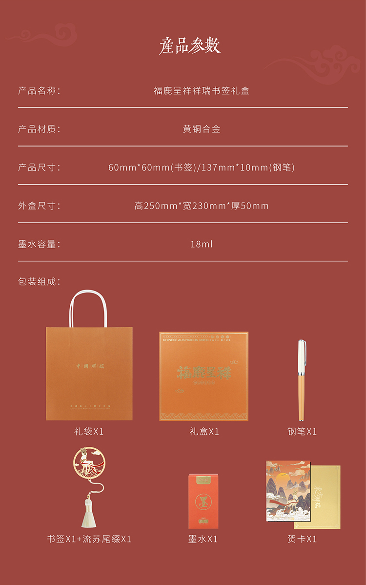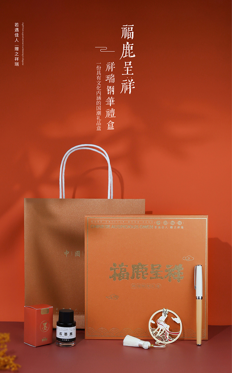 福鹿呈祥钢笔书签礼盒
