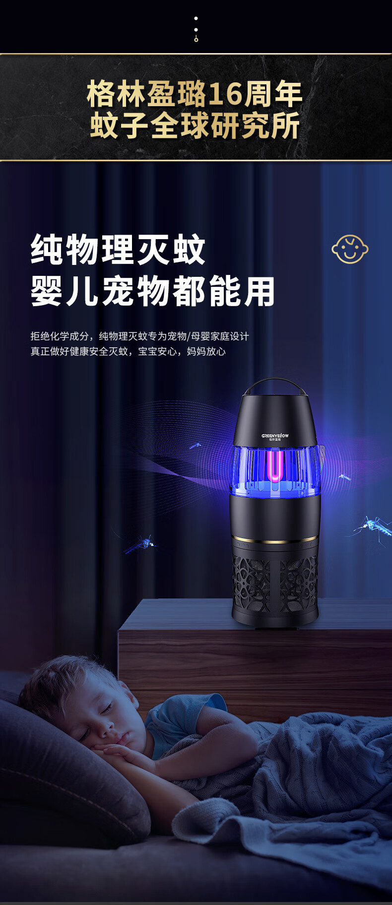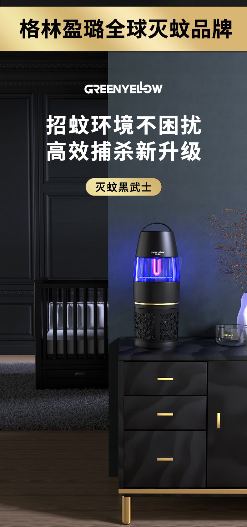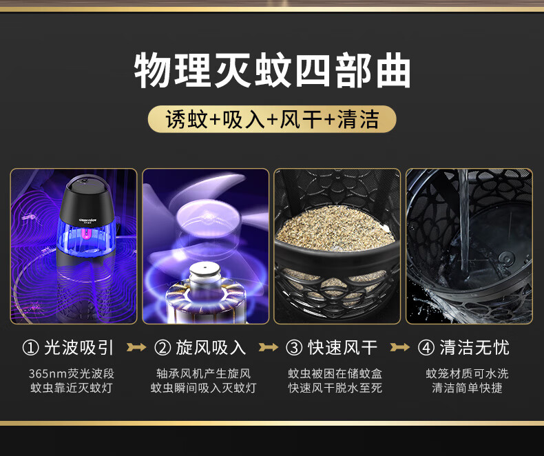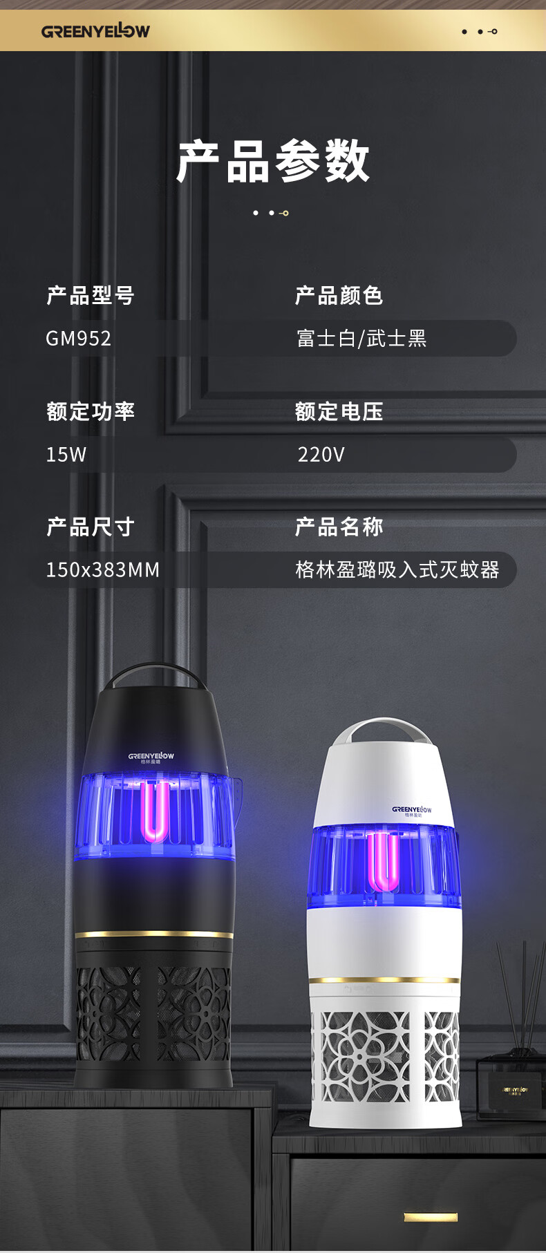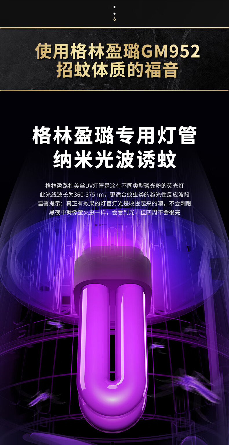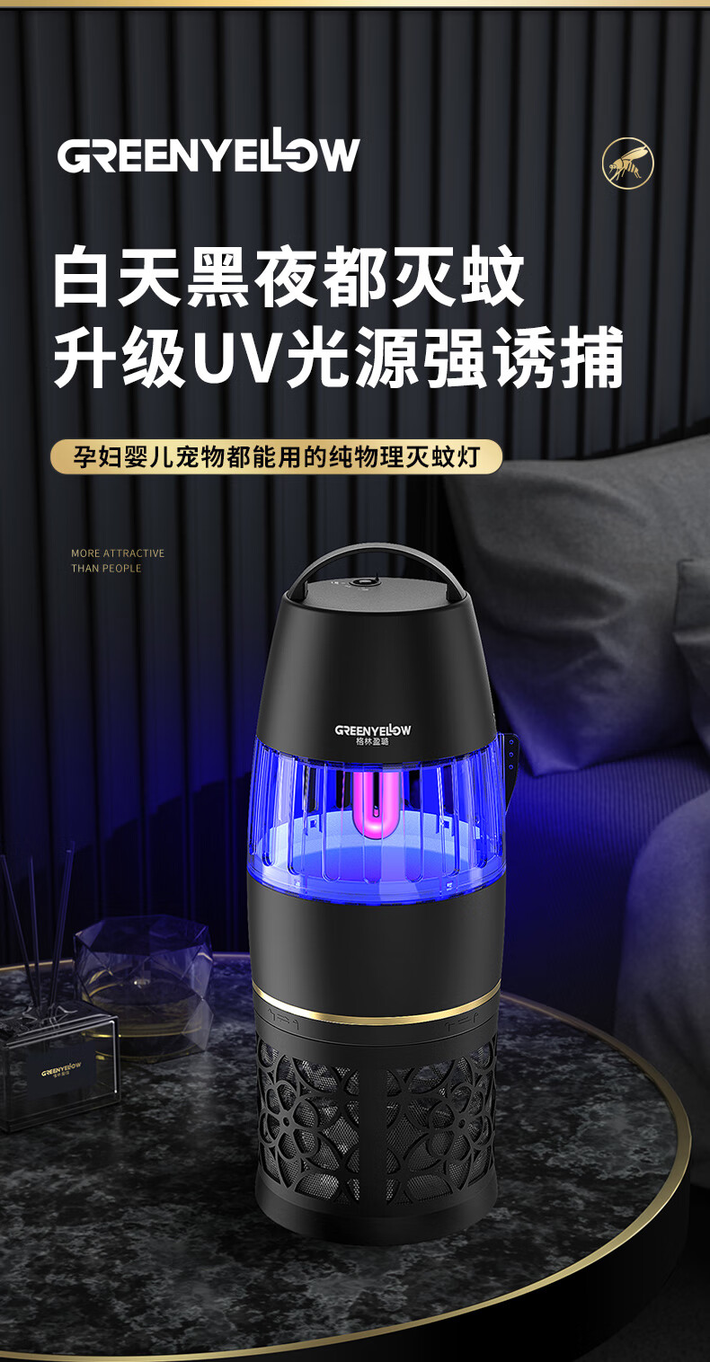 【全球灭蚊品牌】格林盈璐(GREENYELLOW)灭蚊灯灭蚊器驱蚊器电蚊灯家用吸入式蚊子神器母婴适用GM952白色