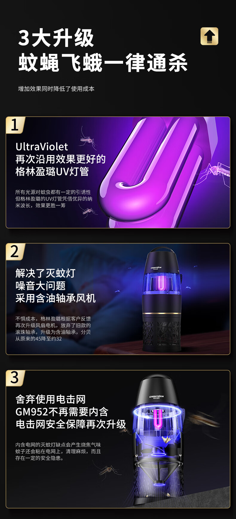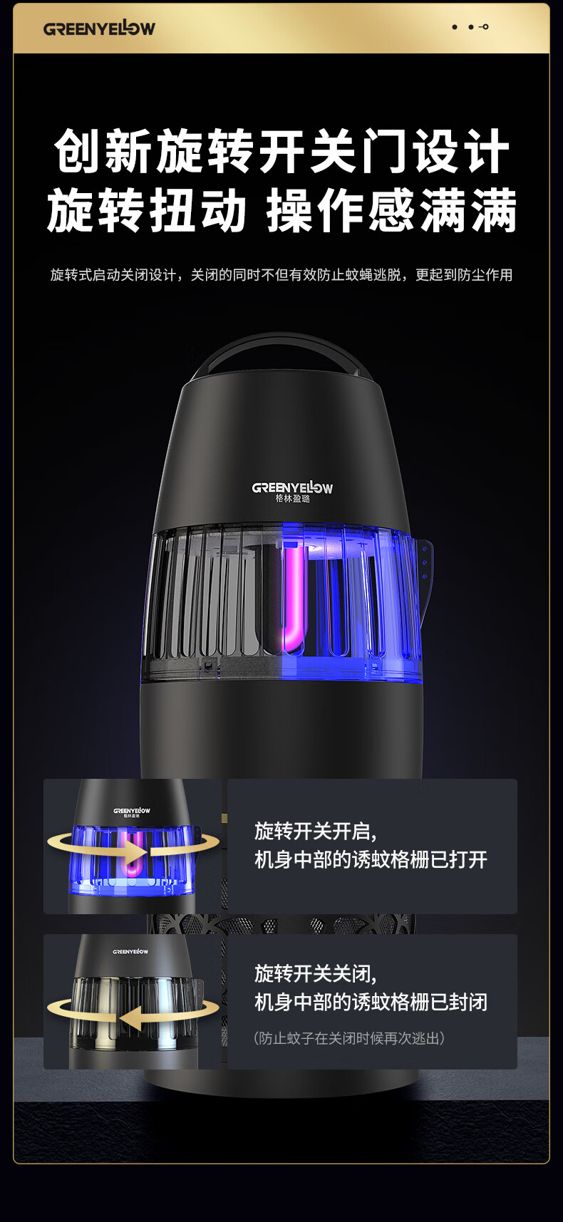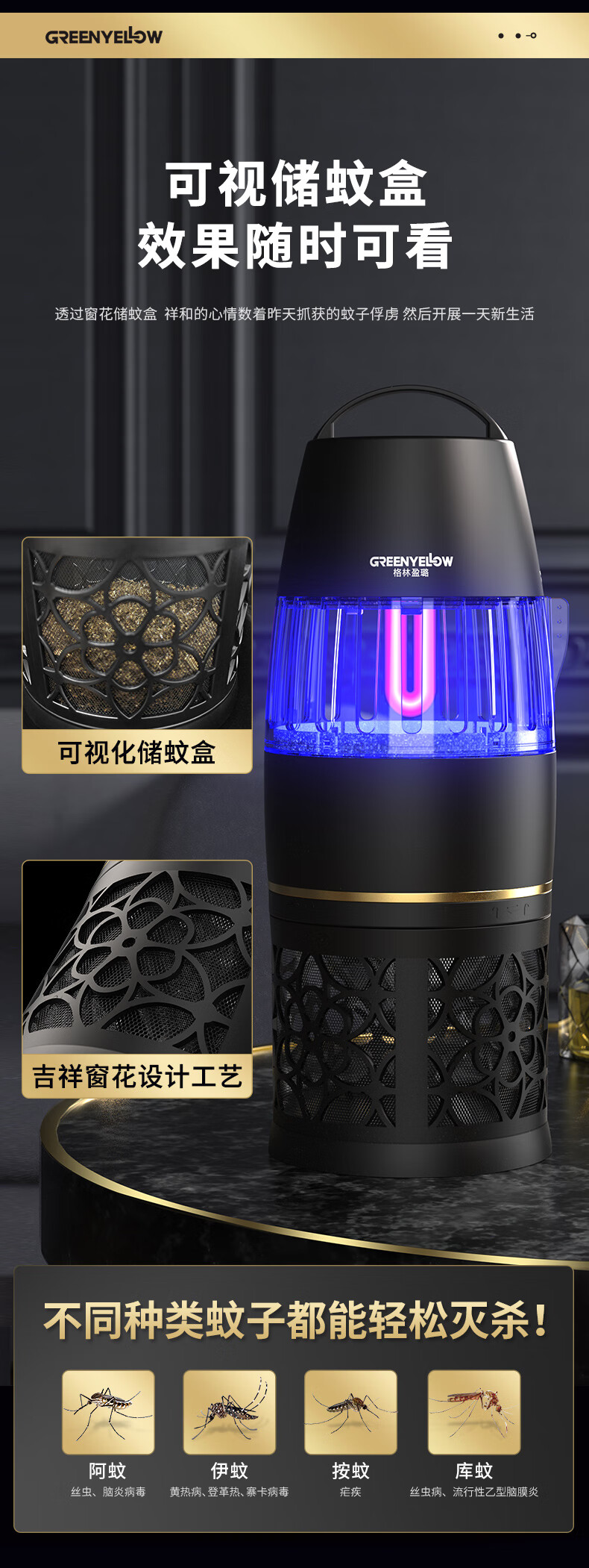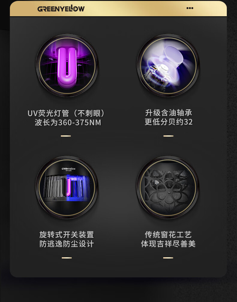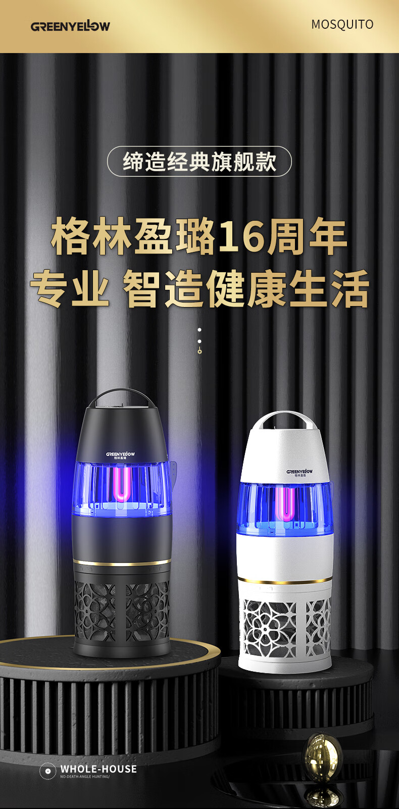 【全球灭蚊品牌】格林盈璐(GREENYELLOW)灭蚊灯灭蚊器驱蚊器电蚊灯家用吸入式蚊子神器母婴适用GM952白色