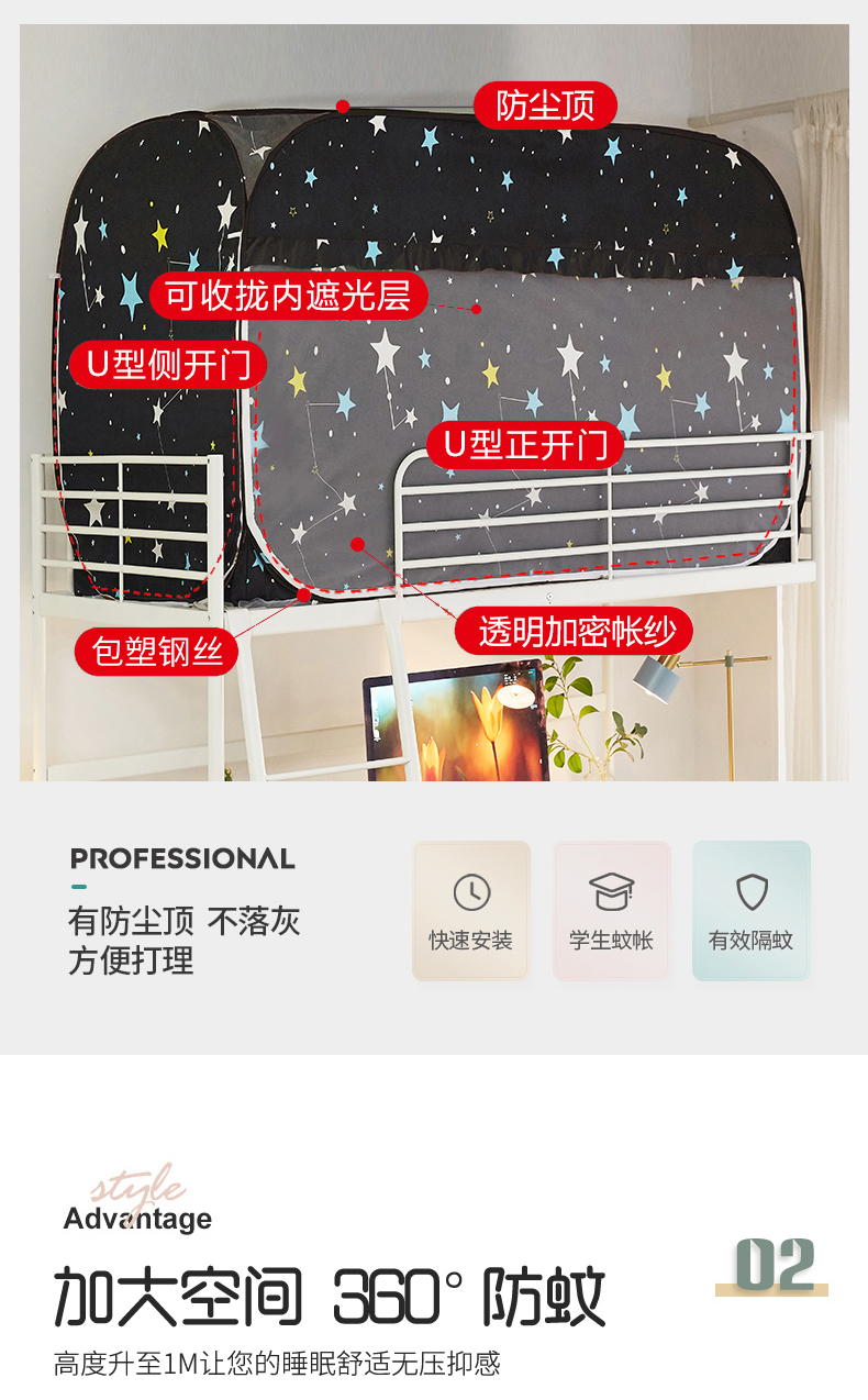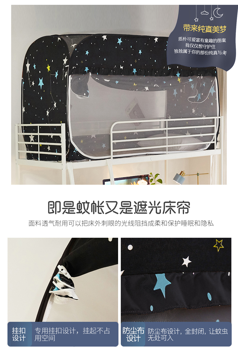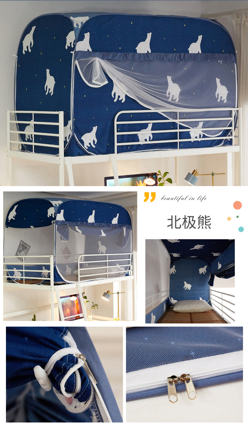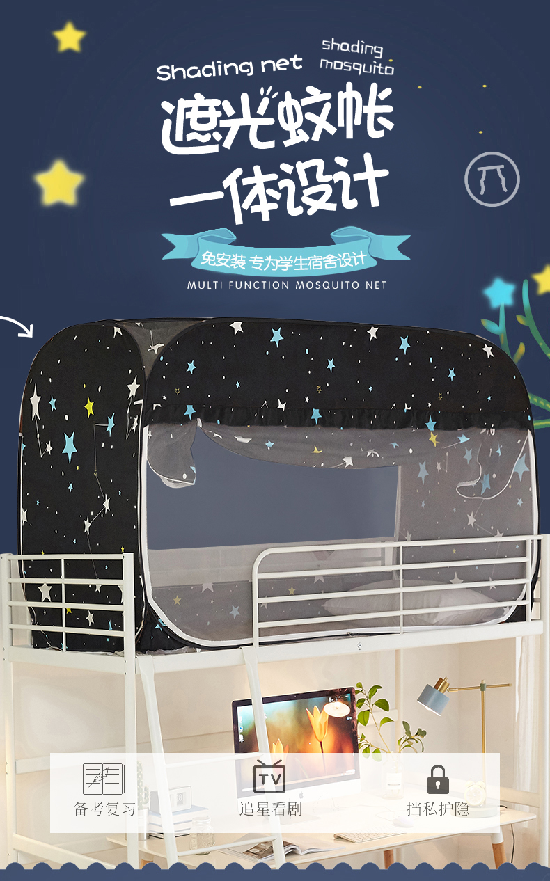 自然醒学生免安装蚊帐宿舍上铺床帘遮光一体式上下铺通用蒙古包蚊帐0.9m单人床HH