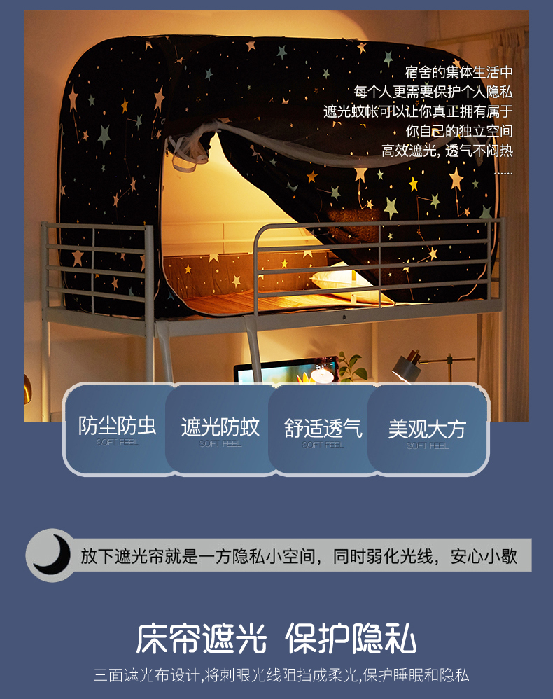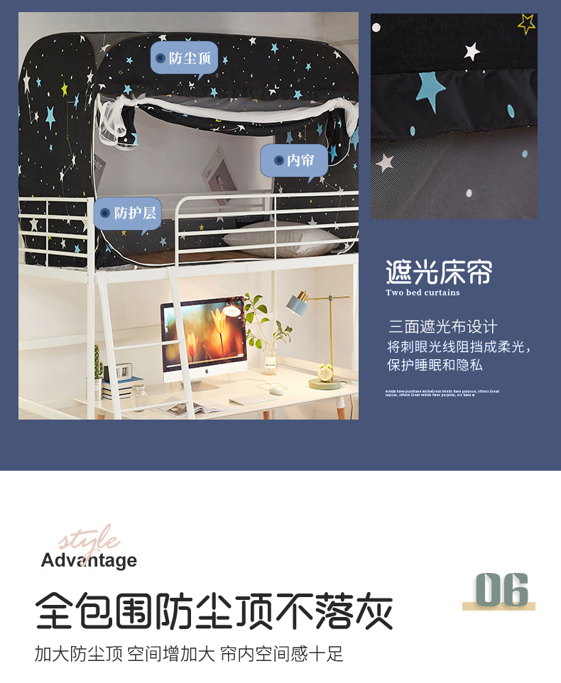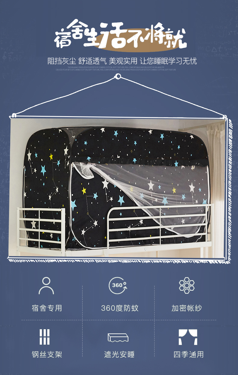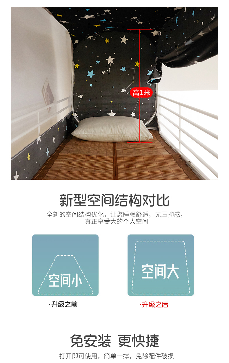 自然醒学生免安装蚊帐宿舍上铺床帘遮光一体式上下铺通用蒙古包蚊帐0.9m单人床HH