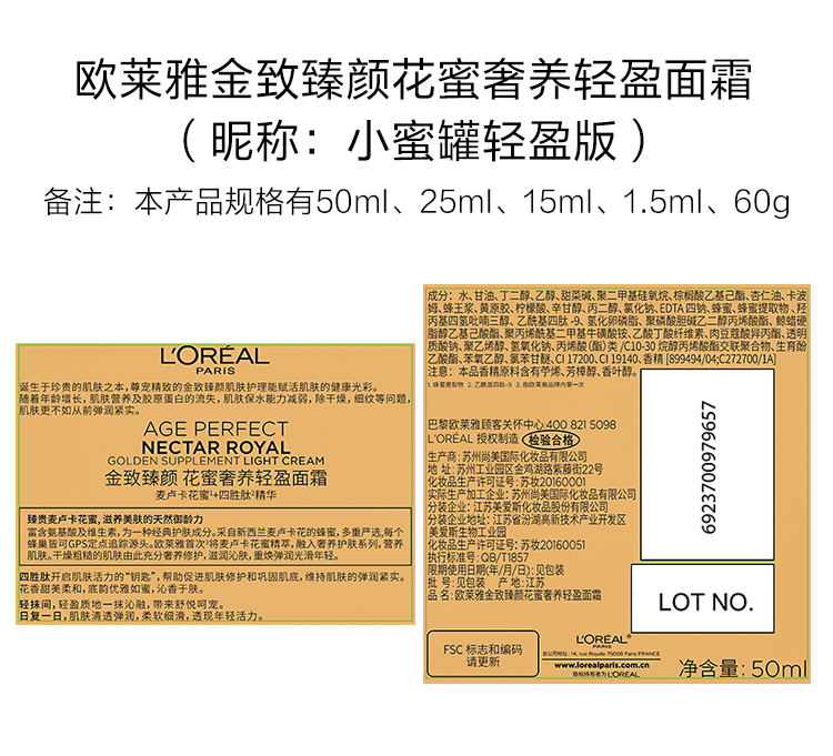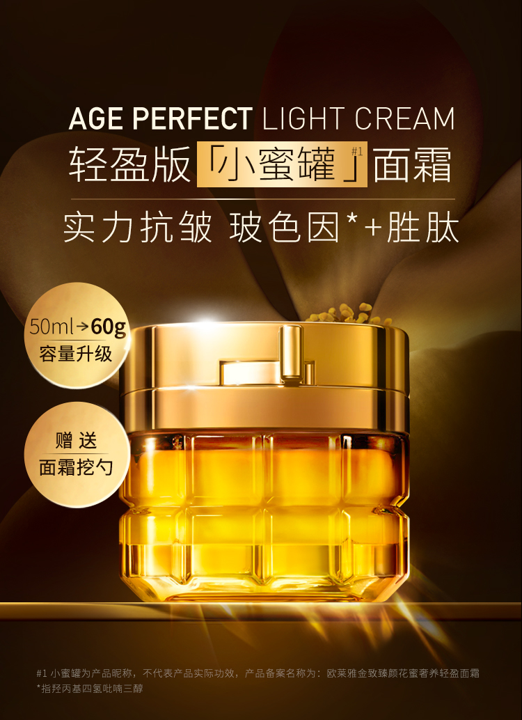 【特惠】欧莱雅(LOREAL)金致臻颜花蜜奢养轻盈面霜60g小蜜罐轻盈版玻色因紧致淡纹补水保湿