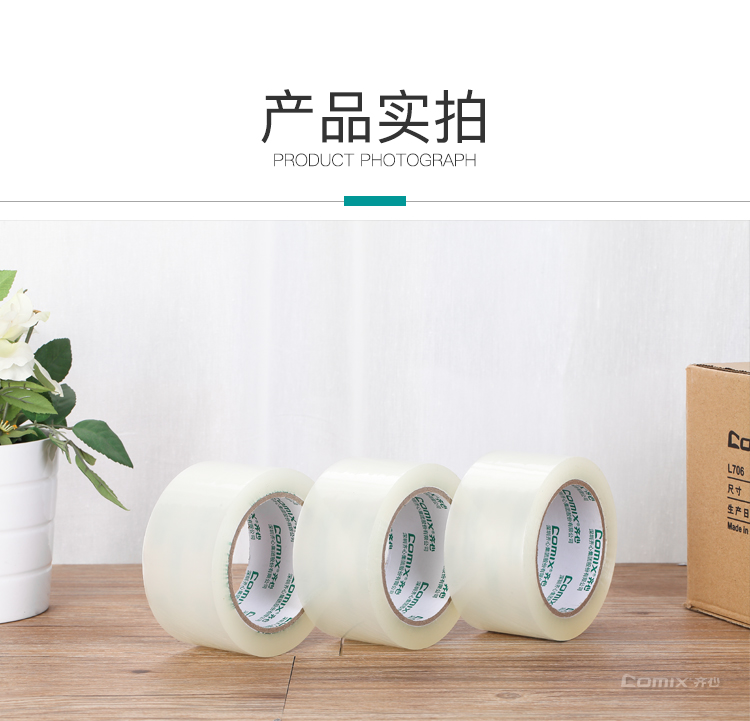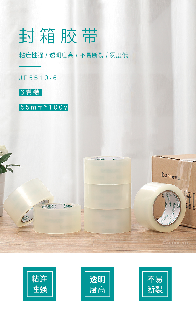 齐心 JP5510-6 普透封箱胶带 6卷/筒 55mm*100y胶纸胶带封箱胶透明