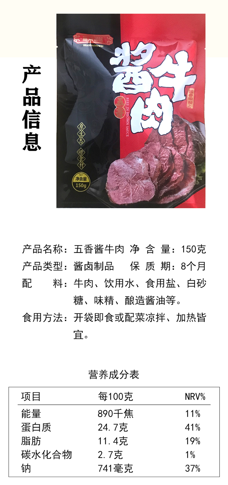 膳道御味酱牛肉,150g*5袋