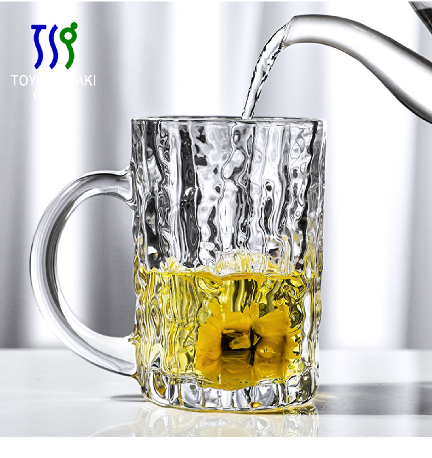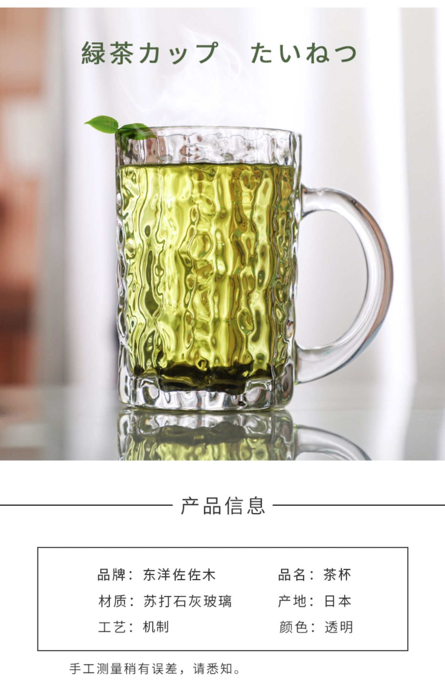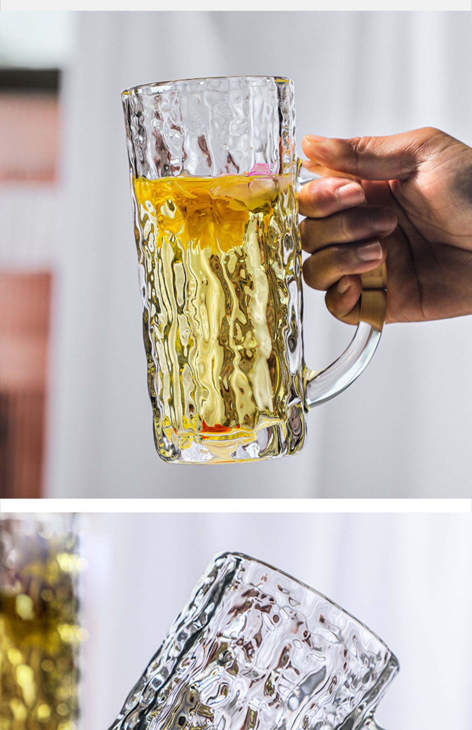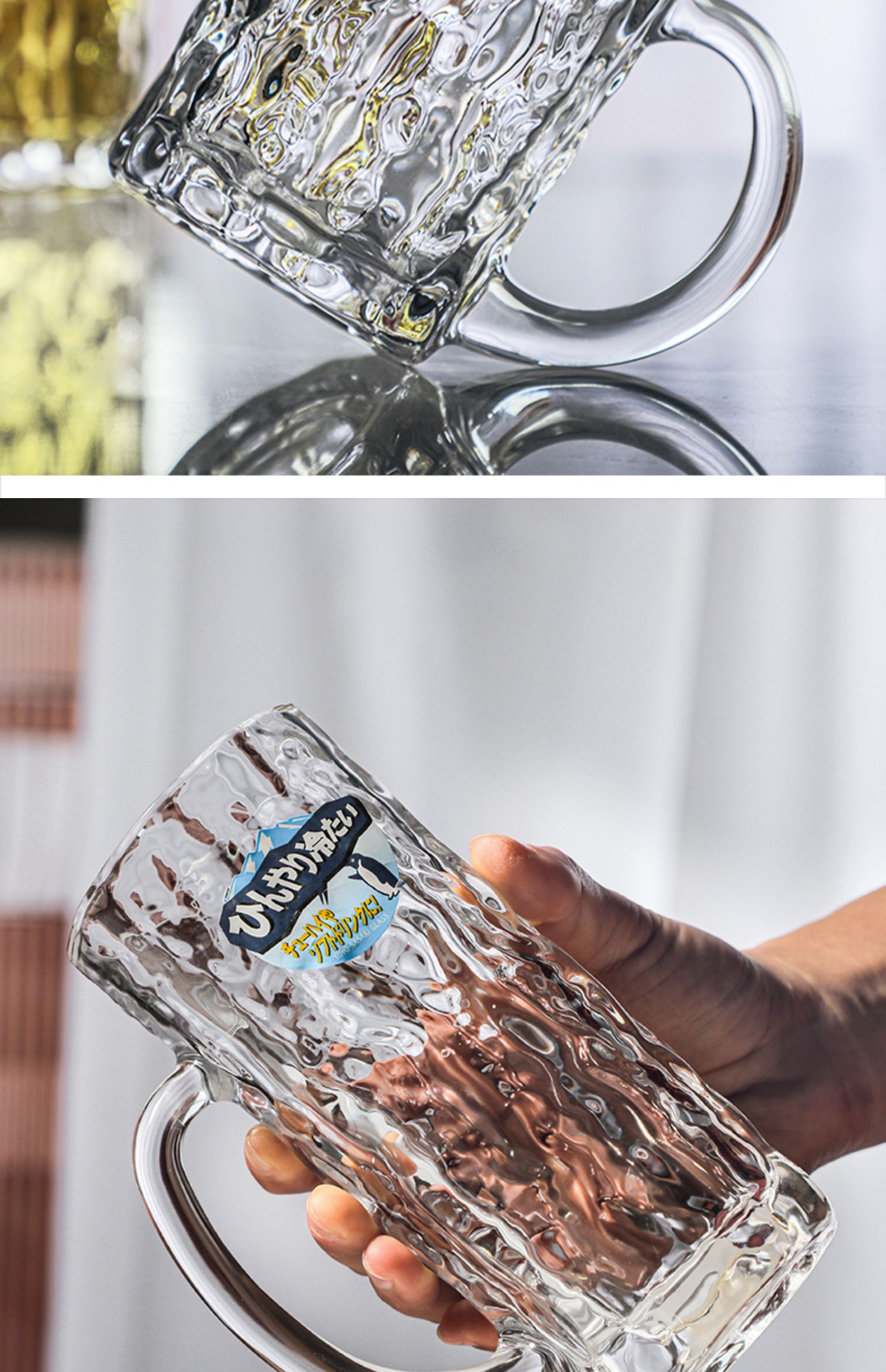 日本进口带把加厚水晶玻璃透明玻璃杯家用耐热泡茶杯牛奶杯啤酒杯佐佐木磨砂啤酒把杯425ml